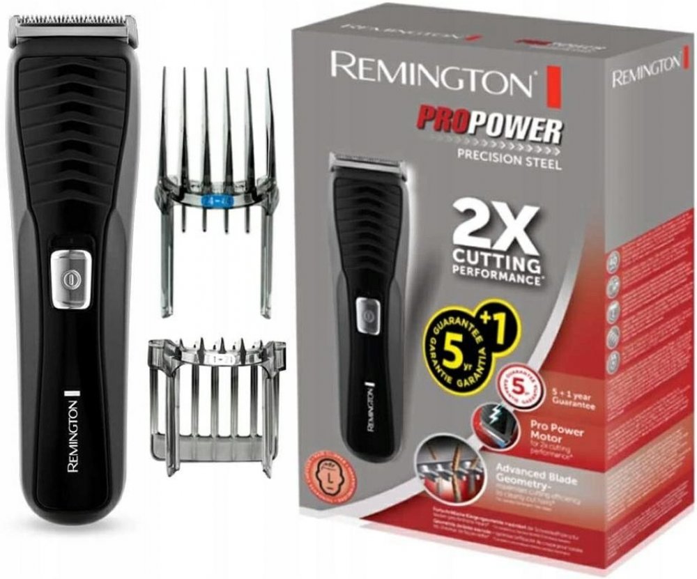 Uvnitř zastřihovače se ukrývá nebývale silný motor. Ten přístroji propůjčí až dvojnásobný výkon oproti běžným zastřihovačům vlasů od společnosti Remington. Tento model vyniká také hřebínky SlideSelect, jež snadno upravíte dle požadované délky sestřihu od 1 do 44 mm. Hřebínky se pak automaticky zajistí a nehrozí jejich posunutí během stříhání. Jistě také oceníte čisticí kartáč a lahvičku s olejem, které jsou součástí balení.