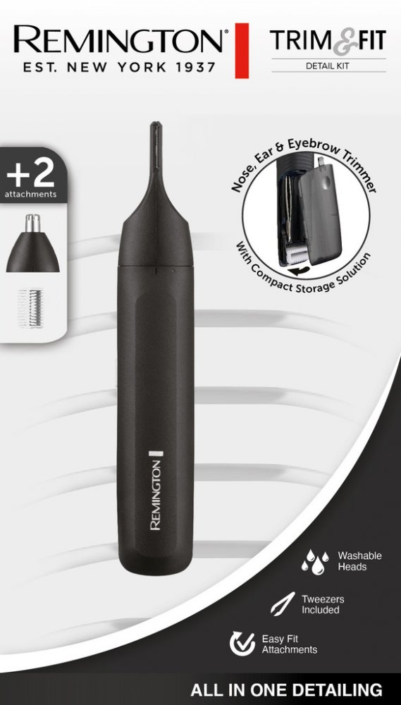 Tento zastřihovač chloupků Remington NE8000 Trim & Fit nabídne několik nástavců, které Vám umožní si upravit obočí nebo zastřihnout chloupky v nose či kolem uší. K doladění svého vzhledu můžete využít i pinzetu, která je součástí tohoto detailního zastřihovače.