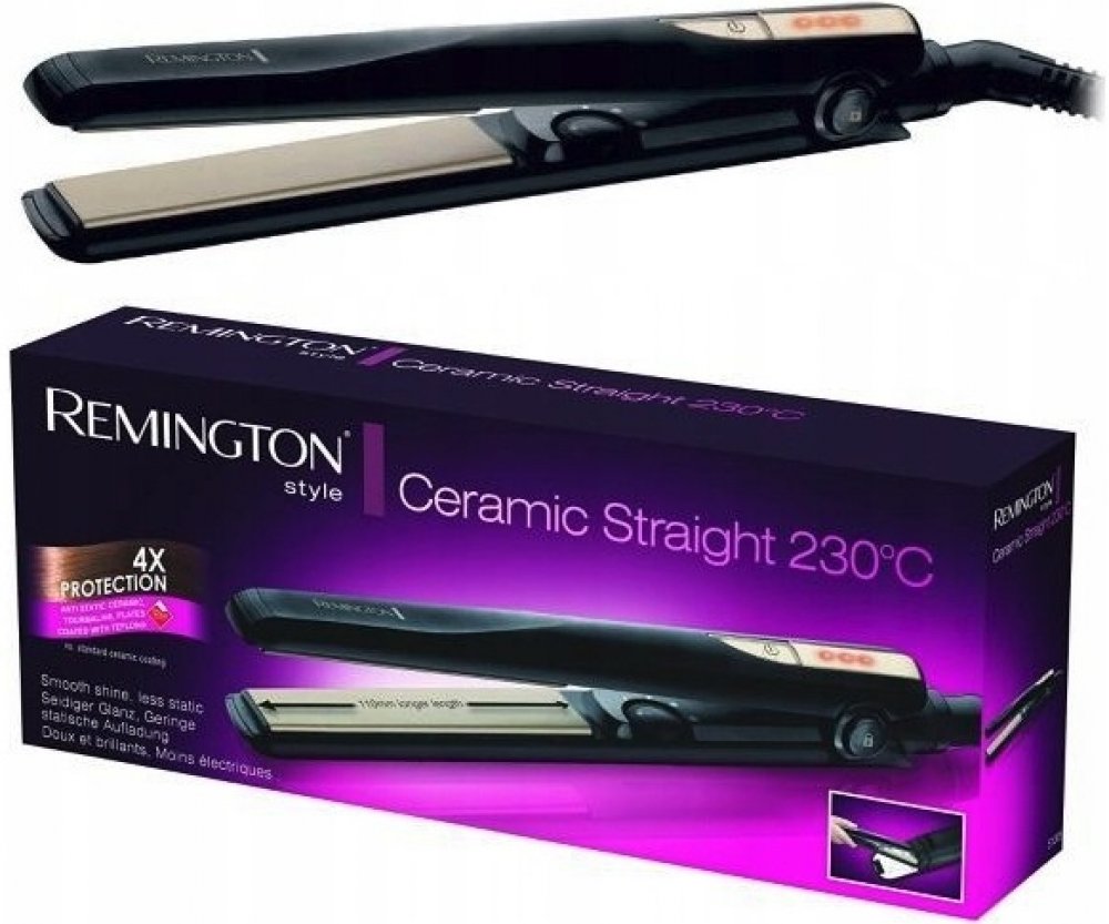S touto žehličkou Remington S1005 Ceramic Straight budete bezpochyby naprosto spokojeni. Její předností jsou keramické teflonové plotny se 4 násobnou ochranou. Vaše vlasy budou rovné a bez poškození.