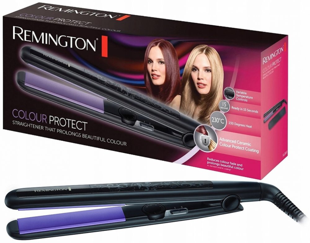 Tato žehlička na vlasy Remington S6300 nabízí zdokonalené keramické plochy Colour Protect, která chrání Vaši barvu před blednutím. Redukuje vyblednutí vlasů a prodlužuje jejich zářivou barvu. Jedinečná žehlička na vlasy pro hedvábně hladký styl Vašich vlasů. Díky funkci chytrého povlaku Vám zajistí ochranu nejen Vašich vlasů,ale zároveň i barvy Vašich vlasů. Mikro kondicionéry, které se přenášejí do vlasů během stylingu a chytře uzamykají barvu tak, aby nedošlo k jejímu blednutí způsobenému mytím vlasů a jejich vystavování UV paprskům. Zůstanou Vám pouze zdravě vypadající vlasy.
