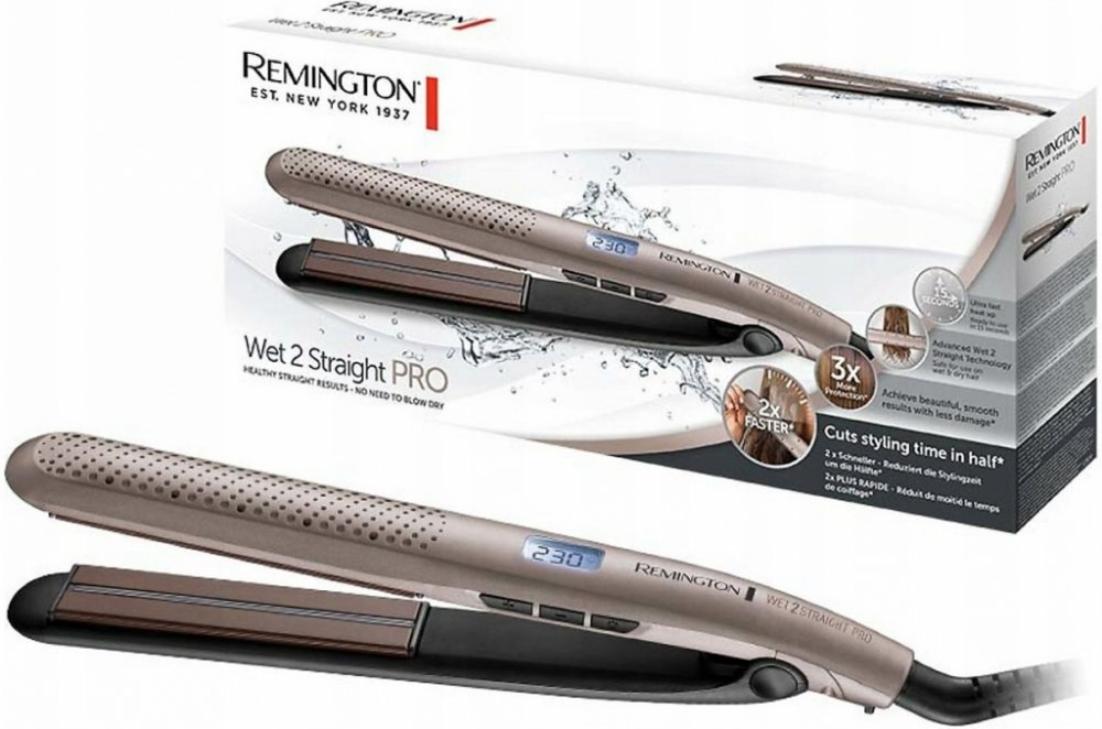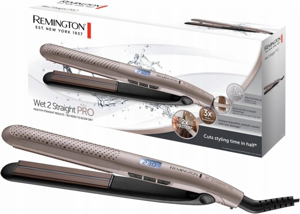 Žehlička na vlasy s pokročilou technologii Wet 2 Straight, která vám umožní vlasy narovnat a vysušit zároveň. Exkluzivní odpařovací systém rychle odstraňuje přebytečnou vodu, takže můžete vynechat vysoušení.