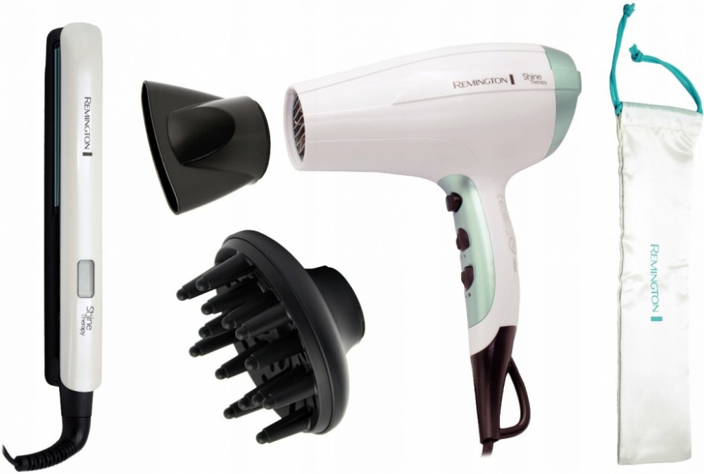 Dárková sada Remington S8500GP obsahuje základní produkty z péče o vlasy nezbytné k úpravě vlasů pro každou příležitost. Tato praktická sada žehlička a fénu Shine Therapy je vhodná jako dárek pro každou ženu. Toto dárkové balení obsahuje fén na vlasy a žehličku na vlasy z kolekce Shine Therapy. Získejte profesionální výsledky s vysoce výkonným vysoušečem vlasů, vyžehlete si vlasy s úzkou žehličkou s keramickým povrchem napuštěným arganovým olejem.