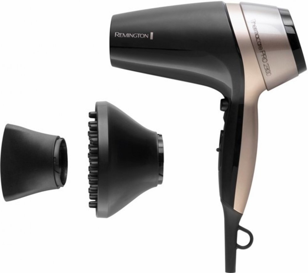Pořiďte si fén na vlasy, který se postará o perfektní a objemný účes. Remington D5715 vyniká svým luxusním designovým provedením, ve kterém spojuje černou barvu se zlatými prvky. Vybrat si můžete ze dvou rychlostí foukání vzduchu a tří teplot. Nechybí ani funkce studeného vzduchu, která zafixuje a uhladí váš účes.