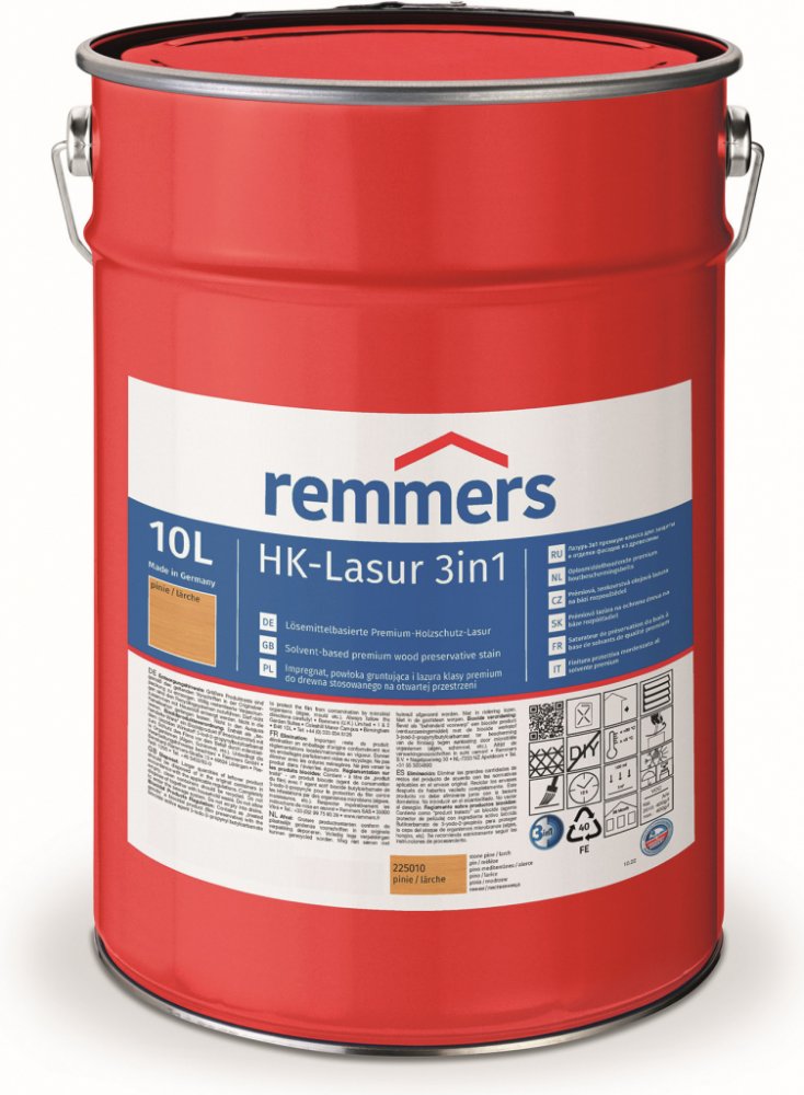 Hlavní přednosti výrobku Remmers HK Lazura 3v1 [plus] 10 l Farblos / Bezbarvý Remmers transparentní lazura zvýrazní přírodní krásu dřeva a současně zachová jeho strukturu Použijete ji k natírání předmětů, které jsou vystaveny venkovním i vnitřním podmínkám Nabízená lazura je optimální na měkké dřevo a tvrdé dřevo Aplikace pomocí štětce nebo válečku bude hračka Povrch bude po zaschnutí matný Nezabezpečí jen krásný vzhled, ale také ochranu vůči UV záření, plísním a povětrnostním vlivům Tenkovrstvá lazura prostupuje do dřeva bez vytváření filmu na povrchu Její vydatnost je 10 m²/l Pořádně zaschne přibližně za 3 h Pro dosažení syté a jasné barvy budou dostatečné dva nátěry Lazura na dřevo Remmers disponuje objemem 10 l
