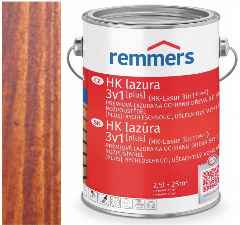 Klíčové přednosti produktu Remmers HK Lazura 3v1 [plus] 2,5 l Teak / Týk Remmers lazura obnoví krásu dřeva a zachovává jeho originální strukturu Lze s ní natírat objekty umístěné venku i uvnitř Nabízená lazura je určena na měkké dřevo a tvrdé dřevo Snadno se aplikuje pomocí štětce Pro tuto lazuru na dřevo je typická její hnědá barva Odstín: teak / týk Povrch zůstane po zaschnutí matný Kromě estetiky má také funkci ochrany proti UV záření, plísním a povětrnostním vlivům Tenkovrstvá lazura vniká hlouběji do dřeva, aniž by na povrchu vytvářela film Pyšní se vydatností 10 m²/l Pořádně zaschne přibližně za 3 h Pro dosažení syté barvy je potřeba dvou nátěrů Lazura na dřevo Remmers má objem 2,5 l