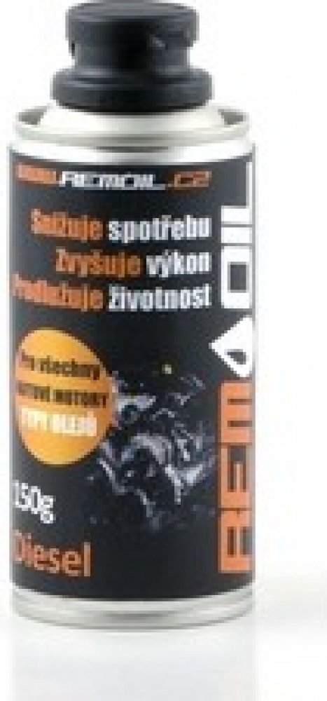 REMOIL Diesel je určen pro obnovu a ochranu vznětových motorů před opotřebením. Je optimalizován pro moderní dieselové motory a motory s turbodmychadlem. Při pravidelné aplikaci prodlužuje životnost a zvyšuje spolehlivost dieselových motorů až 2 krát. Významně snižuje opotřebení. Zvyšuje kompresi na jmenovitou hodnotu. Je stabilní v mazacích systémech s filtry a odstředivkami. Zabraňuje tření za sucha při vysoké zátěži, přehřátí a spouštění motoru za studena.PoužitíKdy použit:Zvýšený hluk motoruSnížený výkonZvýšená spotřeba nafty Návod k použití:Doporučujeme vyměnit motorový olej a filtr (není povinno)Zahřejte motor na provozní teplotu a vypněte jejPřed použitím obsah lahvičky řádně protřepejte 20-30 vteřinVlijte obsah lahvičky otvorem na doplňování olejeNechte motor 10-15 min. běžet naprázdnoPo aplikace ujeďte alespoň 10 kmDávkování: 1 lahvička pro 5-10 litrů motorového oleje