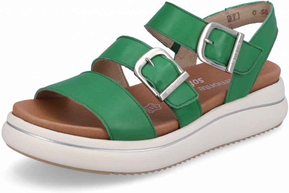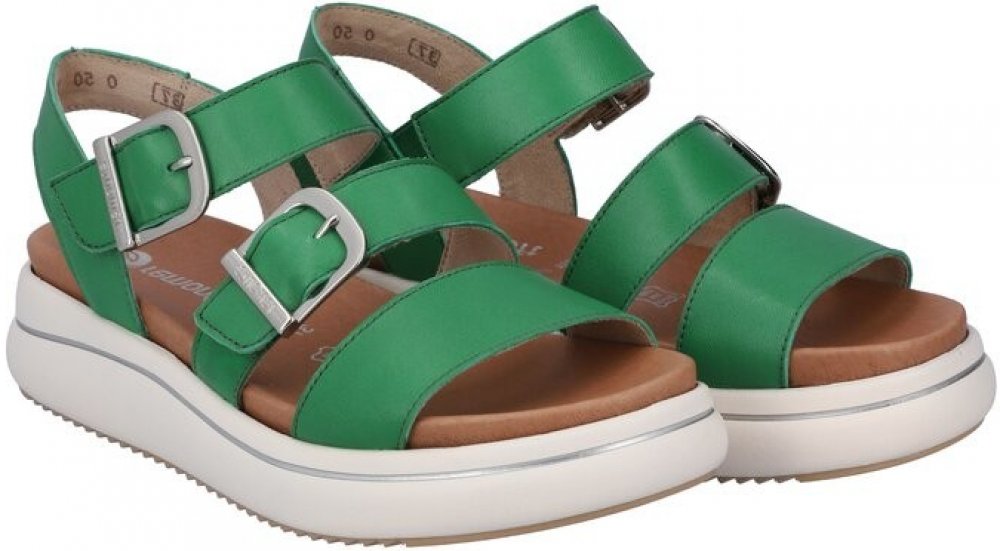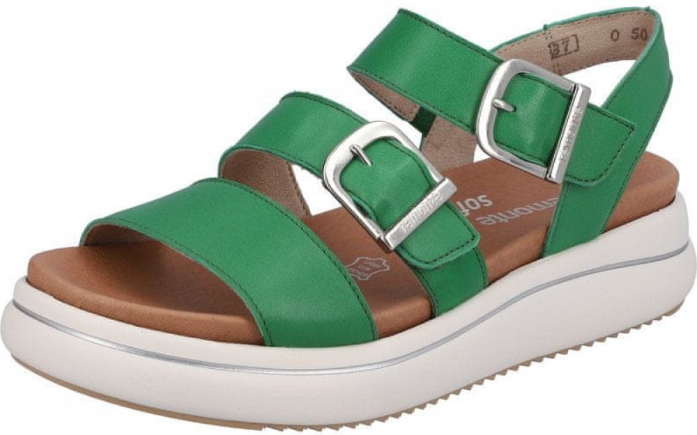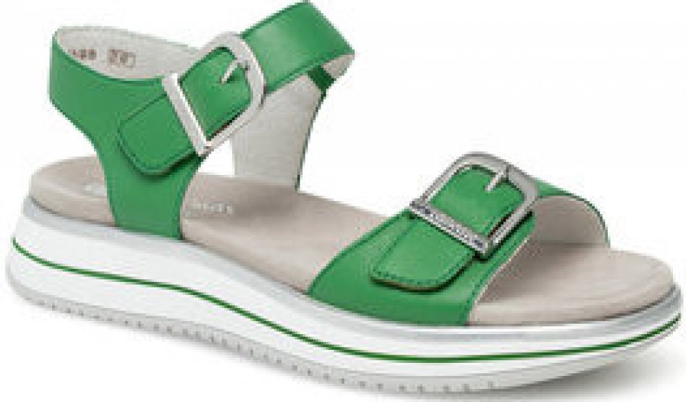 Dámské sandály Remonte na pohodlné platformě. Díky jednoduchosti jsou boty snadno sladitelné a hodí se pro každodenní nošení. Remonte je vyšší řada značky Rieker. Podešev:Podešev obuvi je s jemným protiskluzovým vzorkem vyrobená ze syntetického materiálu. Na platformě vysoké 4 cm. Svršek:Svršek obuvi je vyrobený z koženého materiálu. Barva svršku je zelená. Podšívka:Podšívka je vyrobená z textilního materiálu. Stélka:Stélka je vyrobená z koženého materiálu. Šířka:G Svršek: kůže Podšívka: textil Podešev: kůže Šířka: G