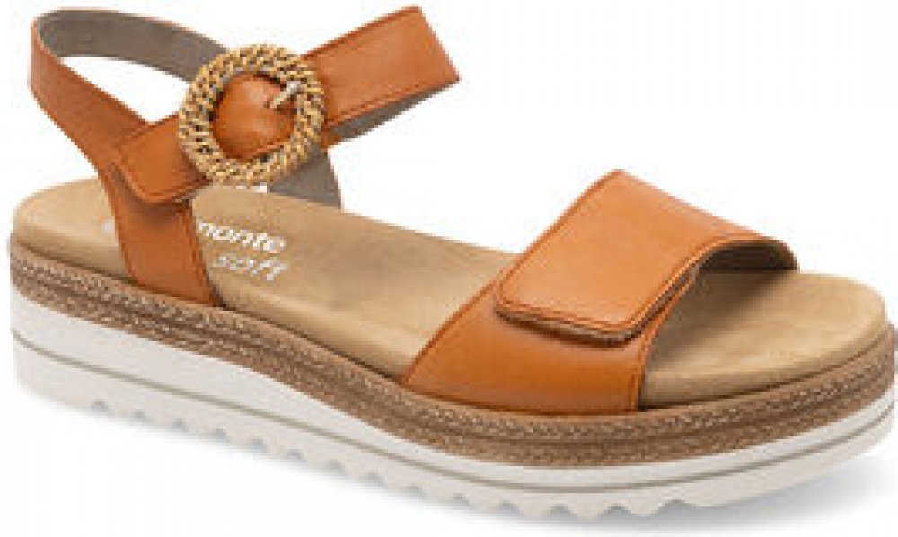 Obuv REMONTE je vyšší řadou značky RIEKER, obuv se vyznačuje kvalitou použitých materiálů. Sandály jsou vyrobeny z kvalitní kůže v působivé barvě, která dodá obuvi stylový vzhled a designová spona u kotníku přidává nádech jedinečnosti. Oba pásky svršku sandálů jsou opatřeny suchým zipem, což zajišťuje snadné obouvání a přizpůsobení šířky dle potřeb. Vyšší podešev poskytuje nejen moderní vzhled, al...
