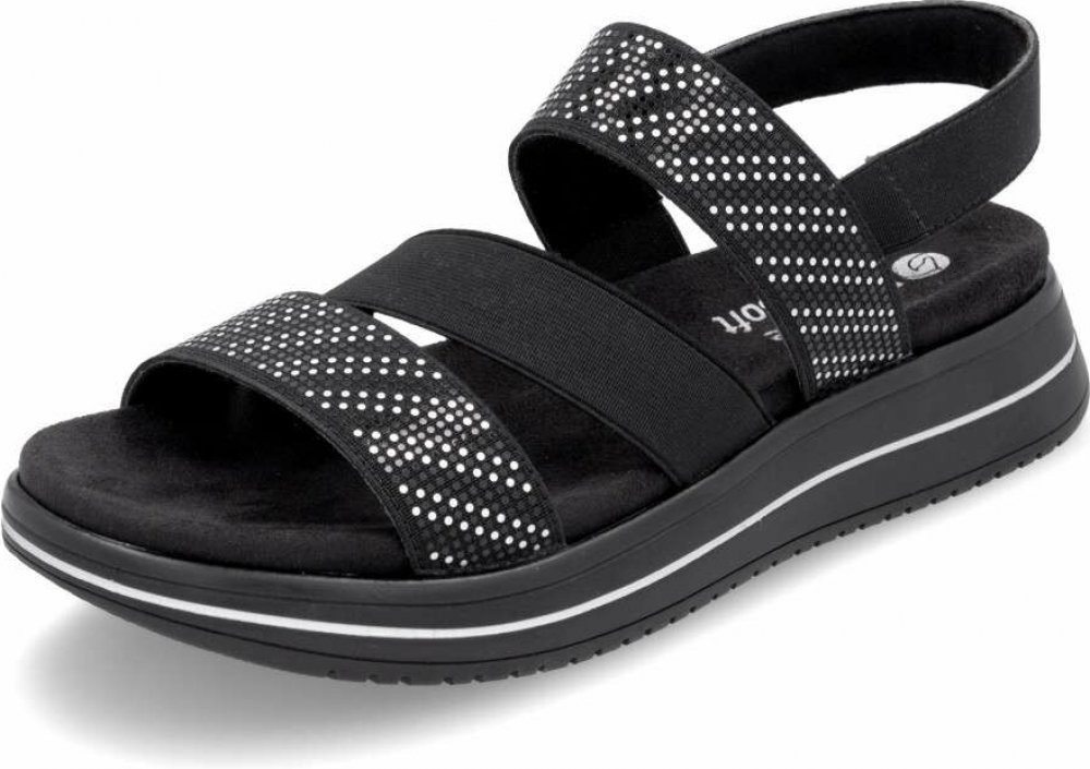 Obuv REMONTE – jedná se o vyšší řadu značky RIEKER, tato obuv se vyznačuje vynikající kombinací svrchních materiálů. Tyto půvabné černé sandály zaujmou jedinečným dekorem, který jim dodává nádech elegance a originality. Sandálky mají kombinaci pevných a pružných pásků, díky čemuž skvěle drží na noze a poskytují pohodlí i při delší chůzi. Vyjímatelná, anatomicky tvarovaná stélka zajišťuje podporu a...