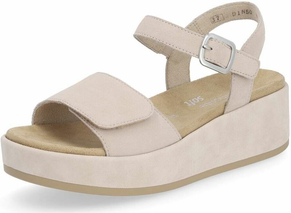 Obuv REMONTE je vyšší řadou značky RIEKER, obuv se vyznačuje kvalitou použitých materiálů. Dámské kožené sandály RIEKER jsou elegantní volbou pro teplé dny. Jednoduchý svršek béžové barvy tvořený pásky, které jsou opatřeny suchými zipy, poskytuje moderní vzhled a zároveň umožňuje snadné obouvání. Měkká vyjímatelná stélka přispívá k pohodlí během nošení, a vyšší podrážka dodává sandálům stylový a t...