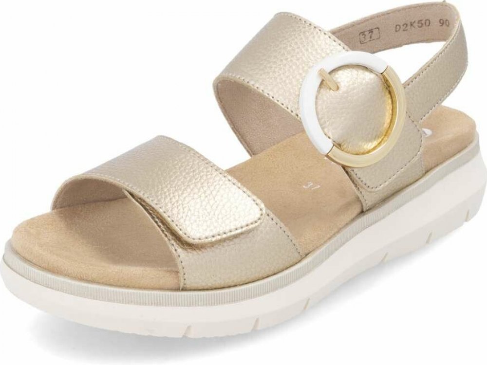 Obuv REMONTE – jedná se o vyšší řadu značky RIEKER, tato obuv se vyznačuje vynikající kombinací svrchních materiálů. Tyto kožené sandály působí exkluzivně svojí zlatou barvou svršku a exkluzivní je také pohodlí, které vytvoří při Vašich pochůzkách. Výrazná spona u kotníku dodává sandálům výrazný vzhled, zatímco pásky se suchými zipy umožňují snadné a rychlé obouvání a přizpůsobení. Vyjímatelná sté...