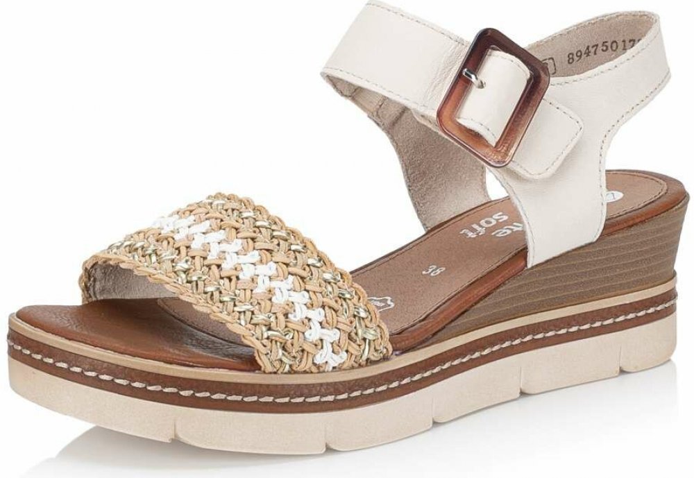 Obuv REMONTE – jedná se o vyšší řadu značky RIEKER, tato obuv se vyznačuje vynikající kombinací svrchních materiálů. Elegantní design, kombinující jemné detaily a kvalitní materiály, zajistí, že se budete cítit skvěle po celý den. Béžové pásky jsou dokonale skloubeny s předním páskem, který zdobí nádherný vzor a sponou u kotníku, tato kombinace dodává celkovému vzhledu jedinečnost. Jednoduše boty nazujete s pomocí suchého zipu umístěného na pásku přes nárt. Komfort při nošení je zajištěn kvalitní koženou stélkou a klínový podpatek, důmyslně poskládaný, nejenže vytváří jedinečný vzhled, ale poskytuje také stabilní oporu při každém kroku. Ženský půvab a maximální pohodlí se dokonale spojují v těchto sandálech, které jsou ideální pro každodenní nošení i pro večerní posezení s přáteli.