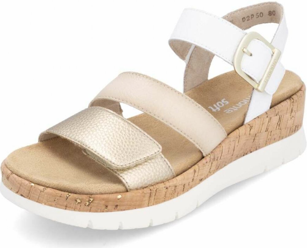Obuv REMONTE – jedná se o vyšší řadu značky RIEKER, tato obuv se vyznačuje vynikající kombinací svrchních materiálů. Stylové sandály ideální pro letní dny, které zaujmou kombinací decentních barev tří kožených pásků vytvářejících svršek a designová spona u kotníku zvýrazňuje jejich celkový šarm. Dva pásky se suchým zipem umožňují snadné přizpůsobení obuvi tvaru nohy, čímž zaručují maximální pohodlí každým krokem. Vyšší podešev opticky prodlouží tvar nohy a zároveň poskytuje stabilitu, zatímco tvarovaná stélka širšího střihu přispívá k celodennímu komfortu a navíc je vyjímatelná. Perfektní doplněk pro každý letní outfit budou tyto sandály.
