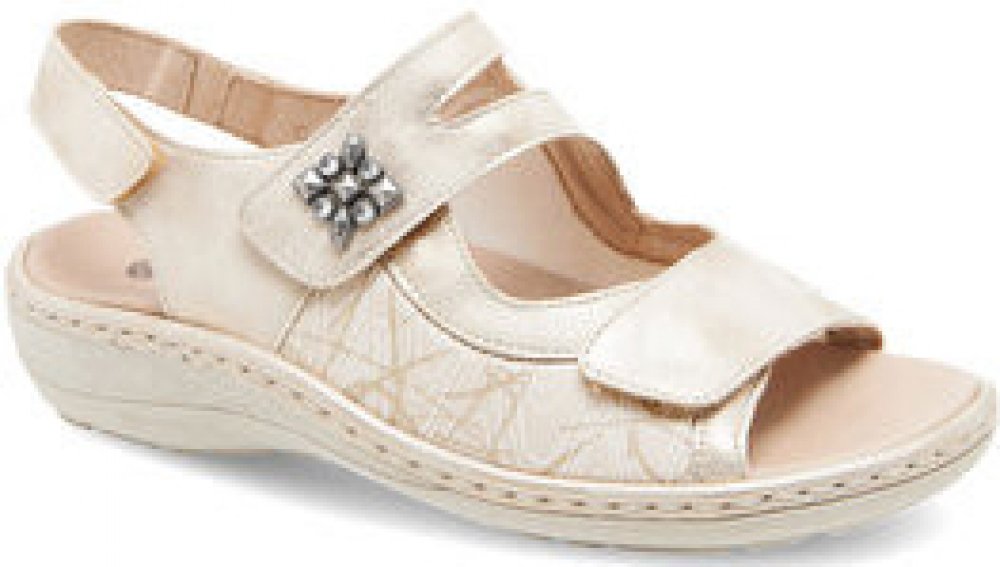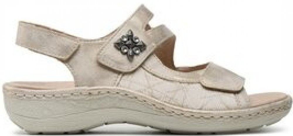 Dámské sandály s pružným materiálem v místě kloubků, vyjímatelnou stélkou a s upínacími pásky na suchý zip.