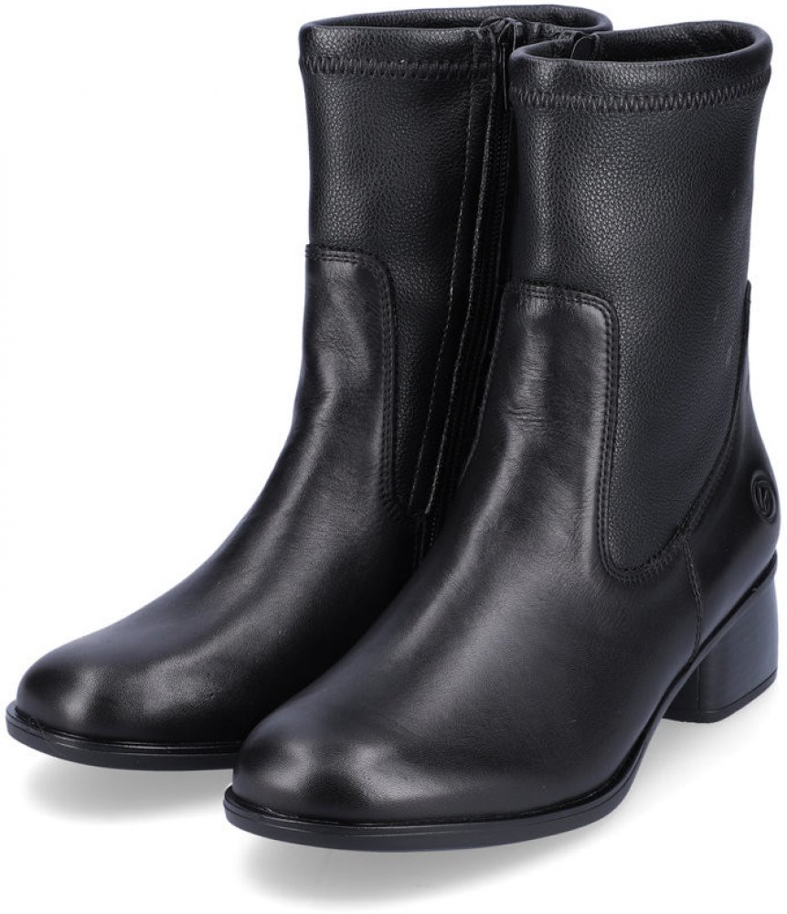 Dámská kotníková obuv, vyrobená v kombinaci hladké kůže a pružné syntetiky. Vnitřek obuvi tvoří podšívka zateplená filcem a komfortní stélka. Snadné nazouvání zajišťuje zip na vnitřní straně obuvi.