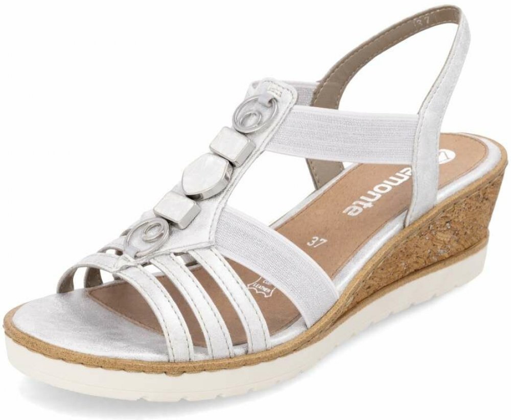 Obuv REMONTE představuje prémiovou řadu značky RIEKER, která se vyznačuje vysokou kvalitou použitých materiálů a precizním zpracováním. Tyto okouzlující sandálky si zamilujete na první pohled. Jemné stříbrné odlesky na svršku v kombinaci s elegantní dekorací na nártu působí žensky a luxusně. Promyšlená kombinace pružných a pevných pásků se dokonale přizpůsobí noze, zatímco elastické gumičky po str...