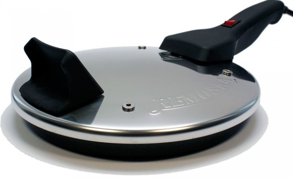 Horní část víka je vyrobena z nerezového plechu. REMOSKA® s víkem bez skla peče rovnoměrně a po celé ploše. Dolní část víka z hliníku je potažena nepřilnavým povrchem Teflon® Classic. Vypínač je umístěn na horní části držadla, tak aby kontrola stavu zap/vyp byla možná v jakékoliv poloze. Umístění vypínače na horní části držadla usnadňuje ovládání pro praváky i leváky. Víko je navrženo tak, aby mohlo být položeno na pracovní plochu topnou částí směrem vzhůru.