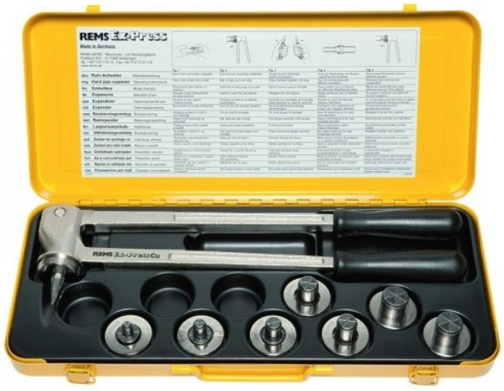 Obsahuje rozšiřovací kleště, rozšiřovací hlavice pro trubky v mm