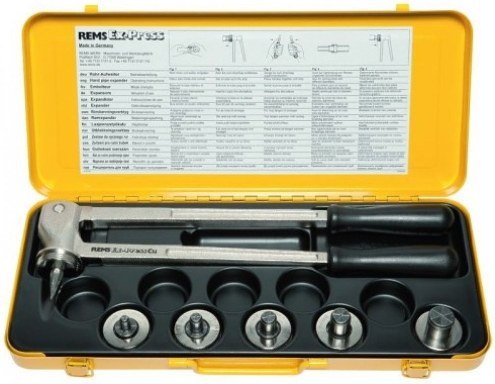 Obsahuje rozšiřovací kleště, rozšiřovací hlavice pro trubky v mm