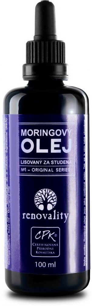 Rostlinný olej lisovaný za studena. Moringa oleifera, malý, opadavý strom, původem z Indie. Dosahuje výšky maximálně 15 metrů. Je považován za „Elixír života". Je ideální pro vysušenou a aknózní pleť. Tento olej je opravdu dar z nebes. Moringový olej má v kosmetice vynikající výsledky. Napomáhá ke zmírnění pigmentových skvrn i dle zpětné vazby našich zákaznic. Jde o osvědčený prostředek proti vráskám na obličeji, na krku a okolo očí. Tento olej obnovuje vitalitu a pevnost pleti a nádherně vám rozzáří tvář. Používá se i na akné a různých pigmentacích na tváři. Moringový olej je prostředek pro vitalitu vašich vlasů a vlasové pokožky. Vyzkoušejte ji na suché, lámavé vlasy bez vitality. Současně působí proti tvorbě lupů a proti svědění hlavy.