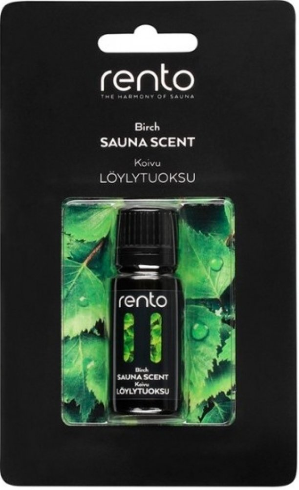 Vonná esence do sauny s vůní břízy. Neředěné parfémy bez přídavku vody, vyrobené z přírodních surovin. Originál od finské firmy Rento. Pokud se cítíte nachlazení a potřebujete pročistit dýchací cesty nebo se chcete jen zrelaxovat, přidejte 3-6 kapek vůně do vody a polévejte s ní kameny. Páru hluboce inhalujte nosem, a budete se cítit jako nový člověk. Esence navíc nádherně provoní Vaši saunu.