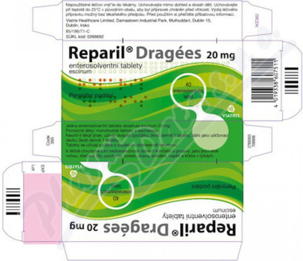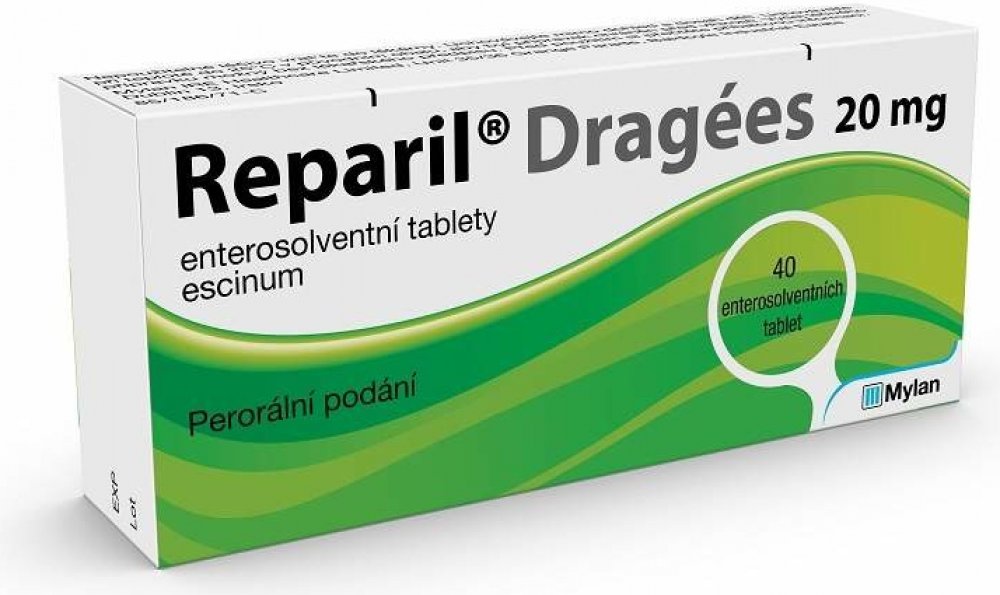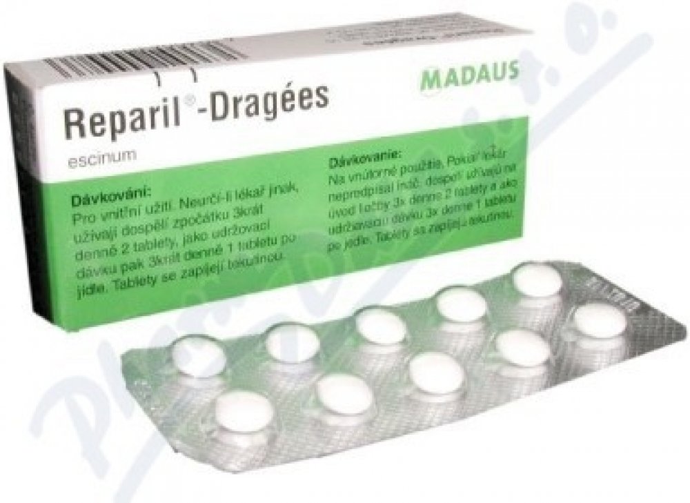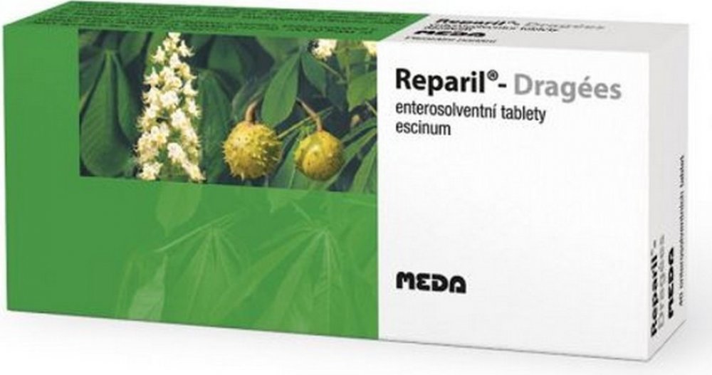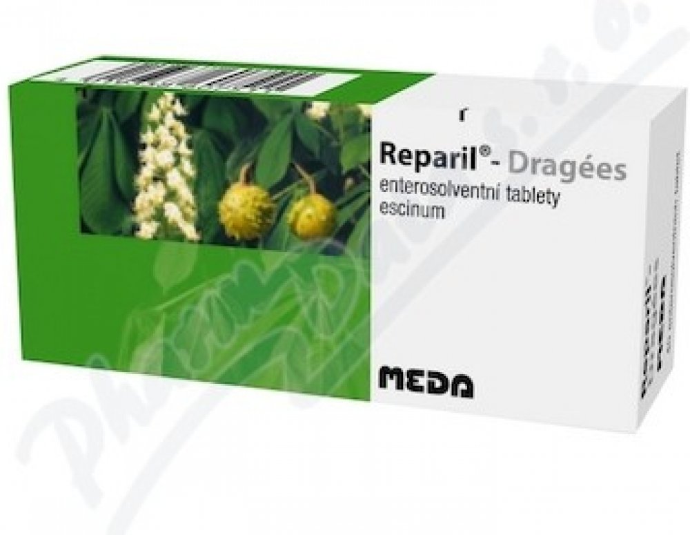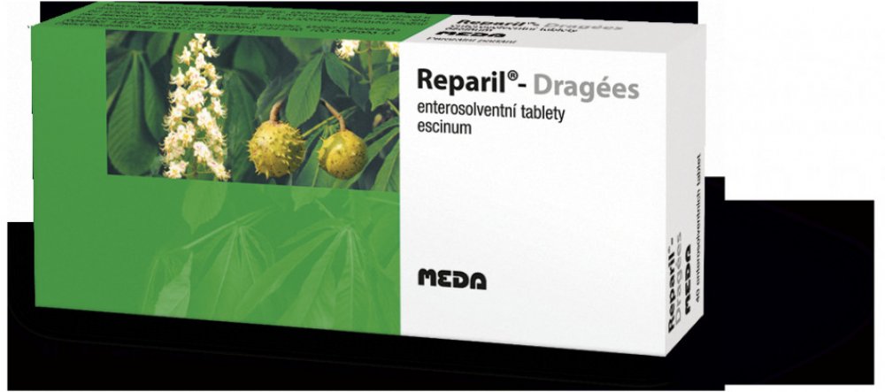 Escin, léčivá látka přípravku Reparil Dragées, zabraňuje hromadění vody v tkáni a vede ke zmírnění otoku tkáně. Oteklé nohy, křečové žíly, pocit tíhy, bolesti, únavy a napětí, které mohou být způsobeny místním otokem v důsledku hromadění vody v tkáni, stejně jako důsledek zánětlivých procesů, rychle ustupují.