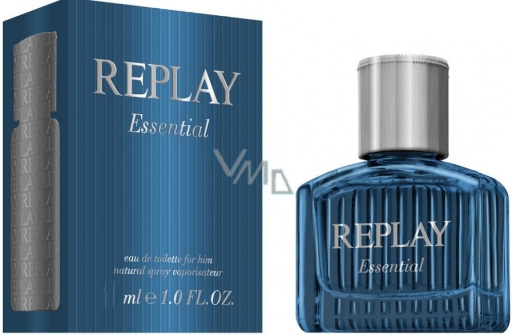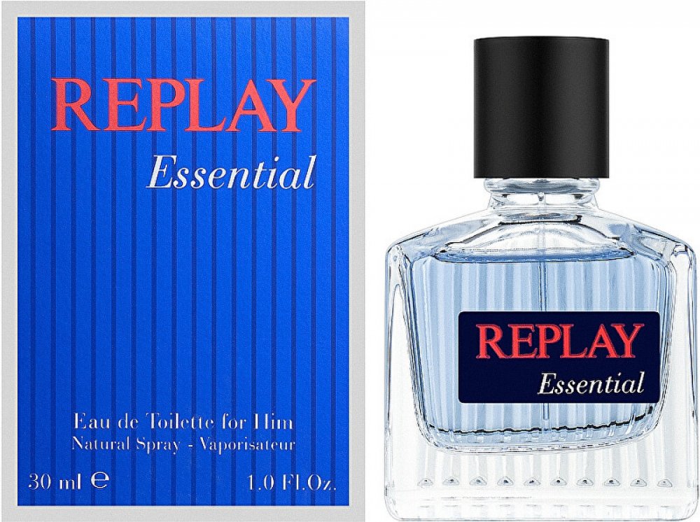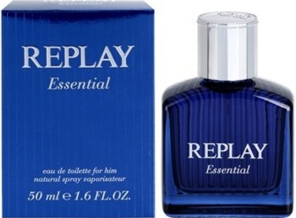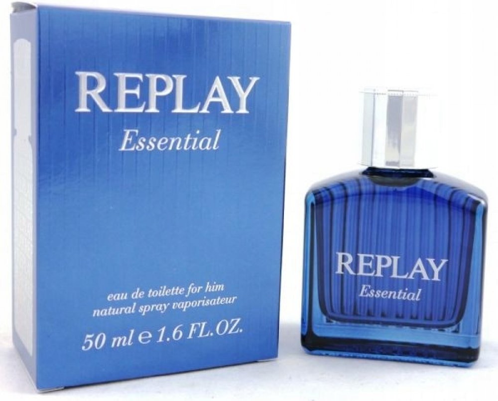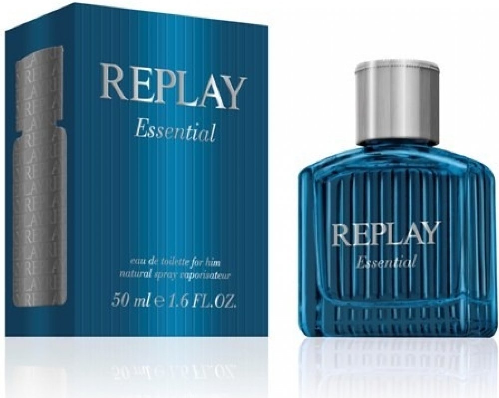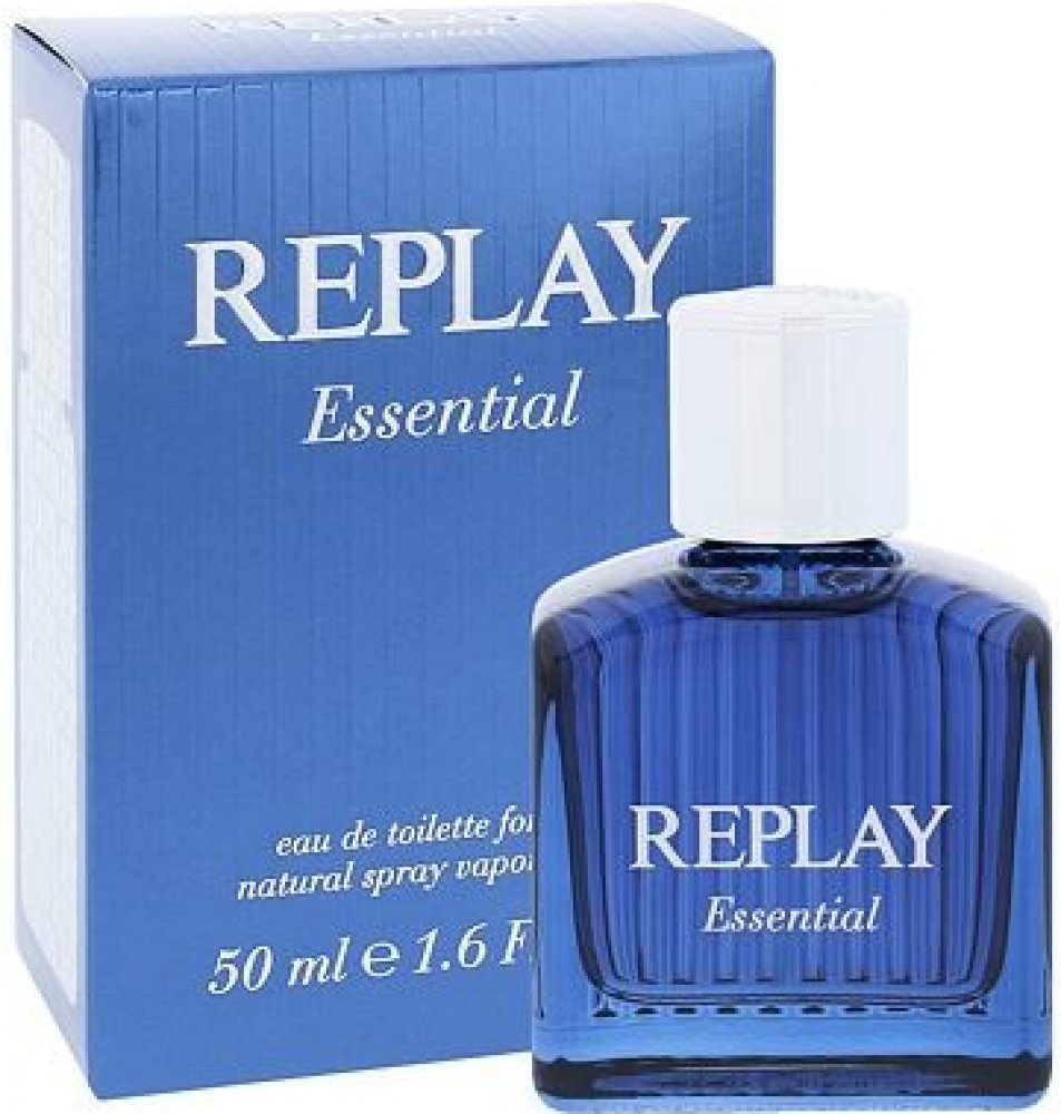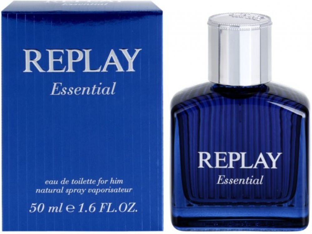 Replay 50 ml pánské toaletní vody dřevité pro denní nošení s celodenní výdrží (4-8h) svěží a energické Essential For Him 2014 z Itálie mainstreamové bergamot, červený rybíz, petitgrain, pomeranč cedr, jasmín, karafiát, pomerančové květy ambra, benzoin, pižmo, santalové dřevo se střední projekcí letní univerzální s bergamotem, s cedrem, s jasmínem, s pižmem Replay klasické TSA kompatibilní (≤100ml) rozprašovač 100 g standardní