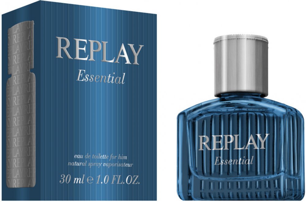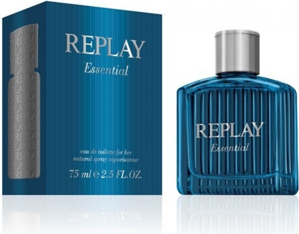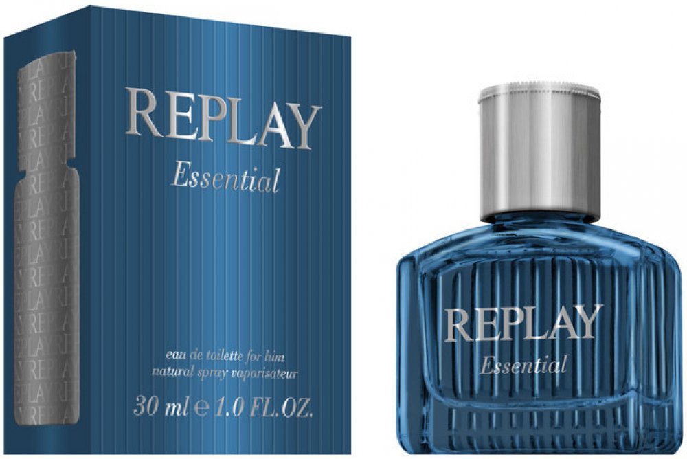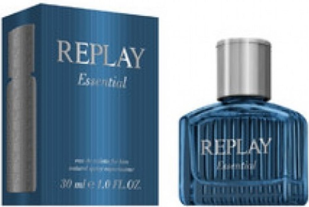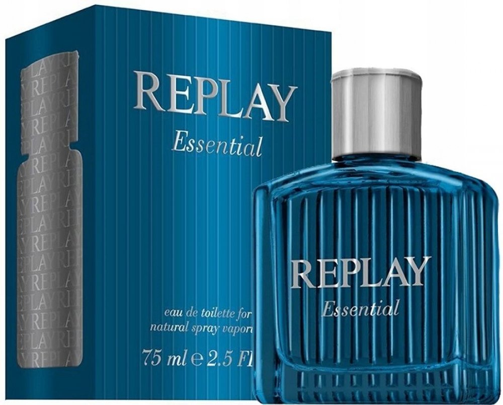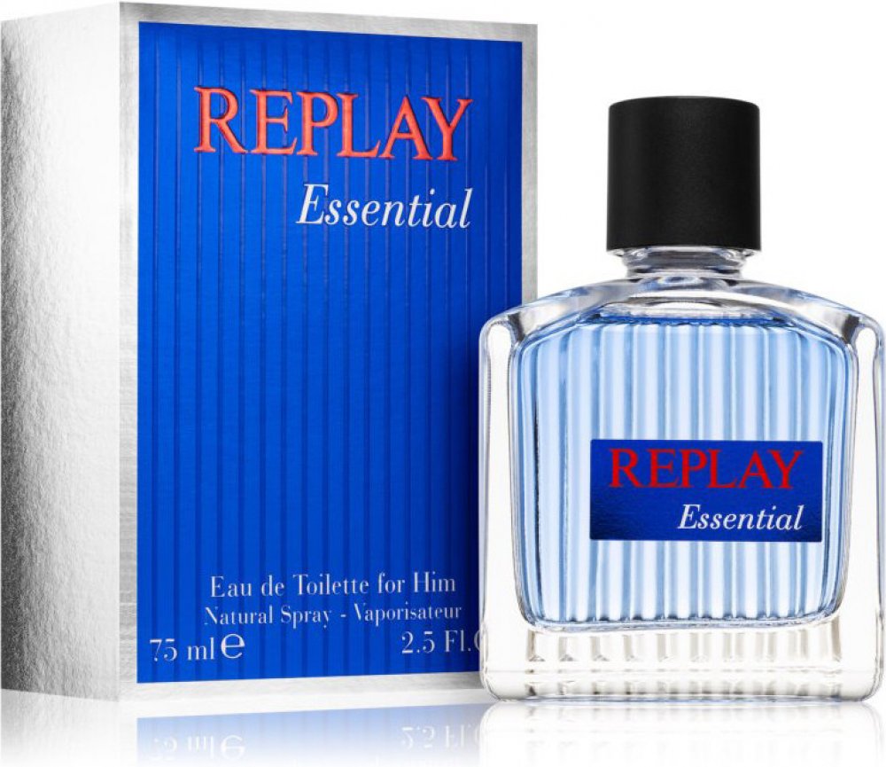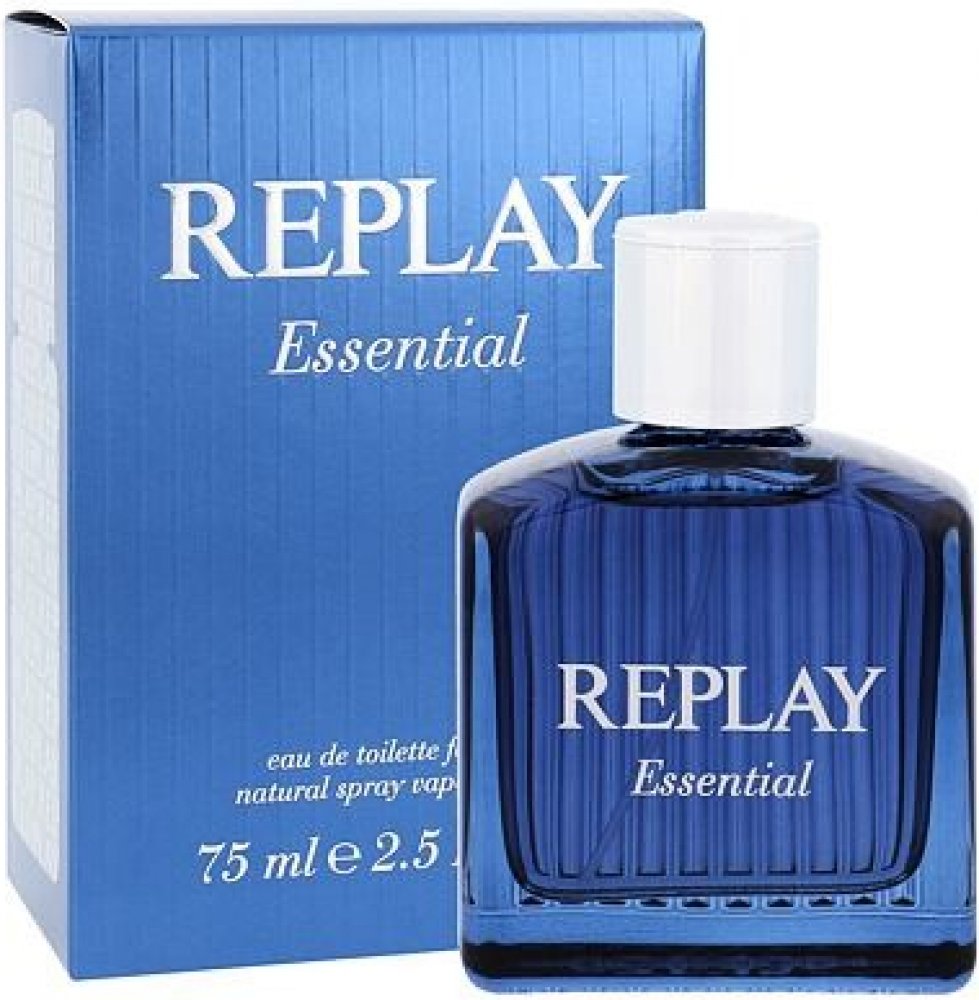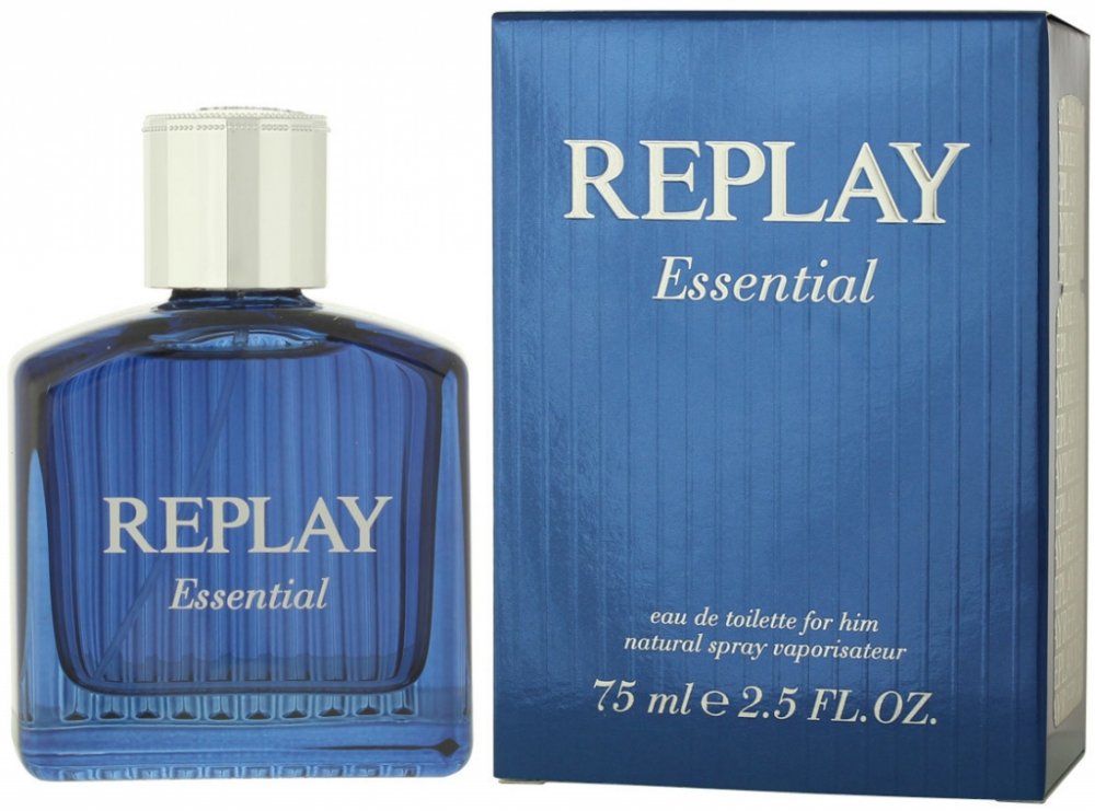 Replay 75 ml pánské toaletní vody santalové s celodenní výdrží (4-8h) svěží a energické Essential For Him 2014 mainstreamové červené bobule, vodní tóny kardamom pačuli, santalové dřevo se střední projekcí celoroční s červenými bobulemi, s kardamomem, s pačuli Replay klasické TSA kompatibilní (≤100ml) rozprašovač standardní