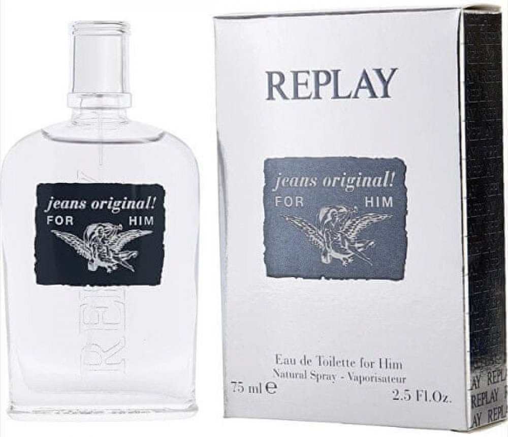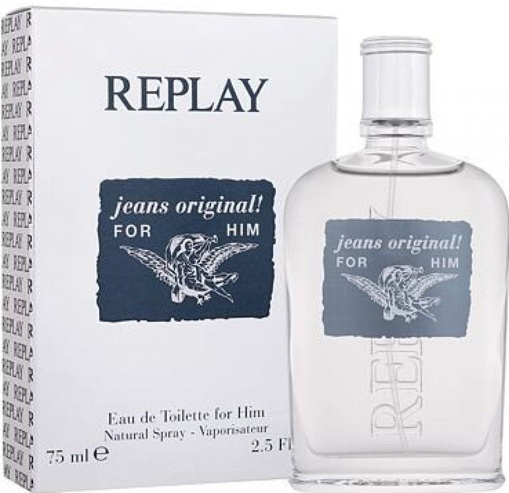 Replay 75 ml pánské toaletní vody citrusové pro denní nošení s celodenní výdrží (4-8h) svěží a energické Replay Jeans Original For Him 2012 z Itálie mainstreamové bergamot, citron, koriandr máta, muškátový oříšek ambra, limetka, palisandr se střední projekcí letní kompatibilní s bergamotem, s citronem, s ambrou, s palisandrem Replay klasické TSA kompatibilní (≤100ml) rozprašovač standardní