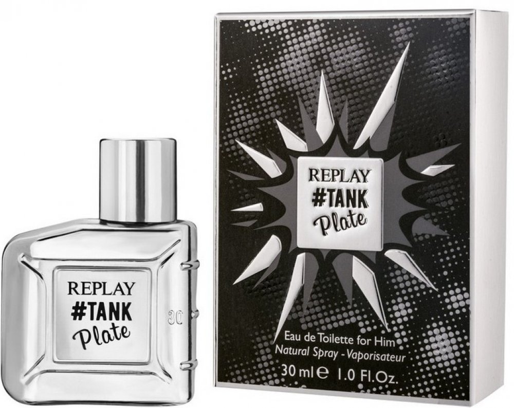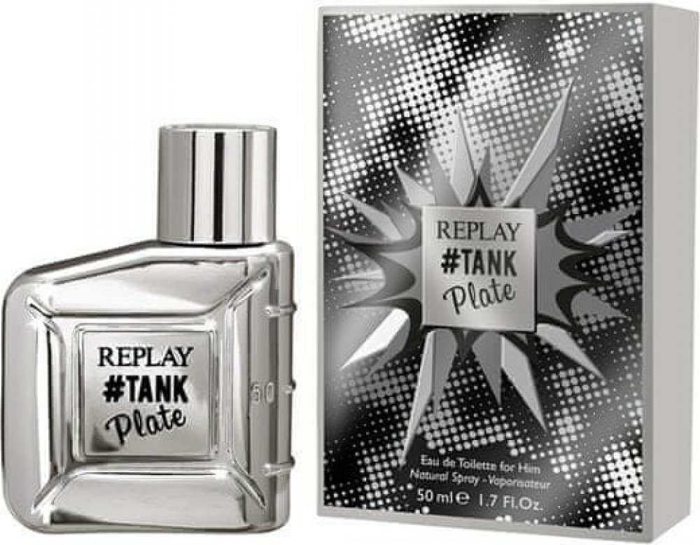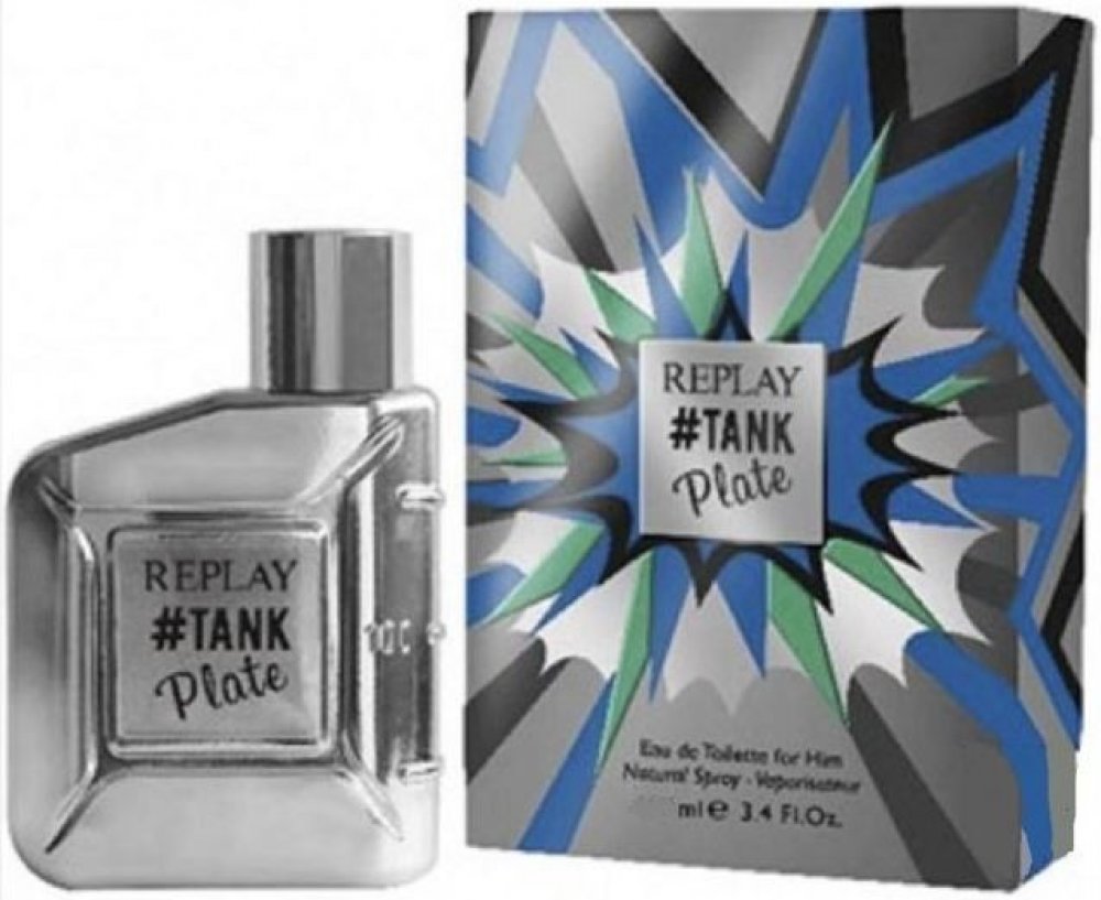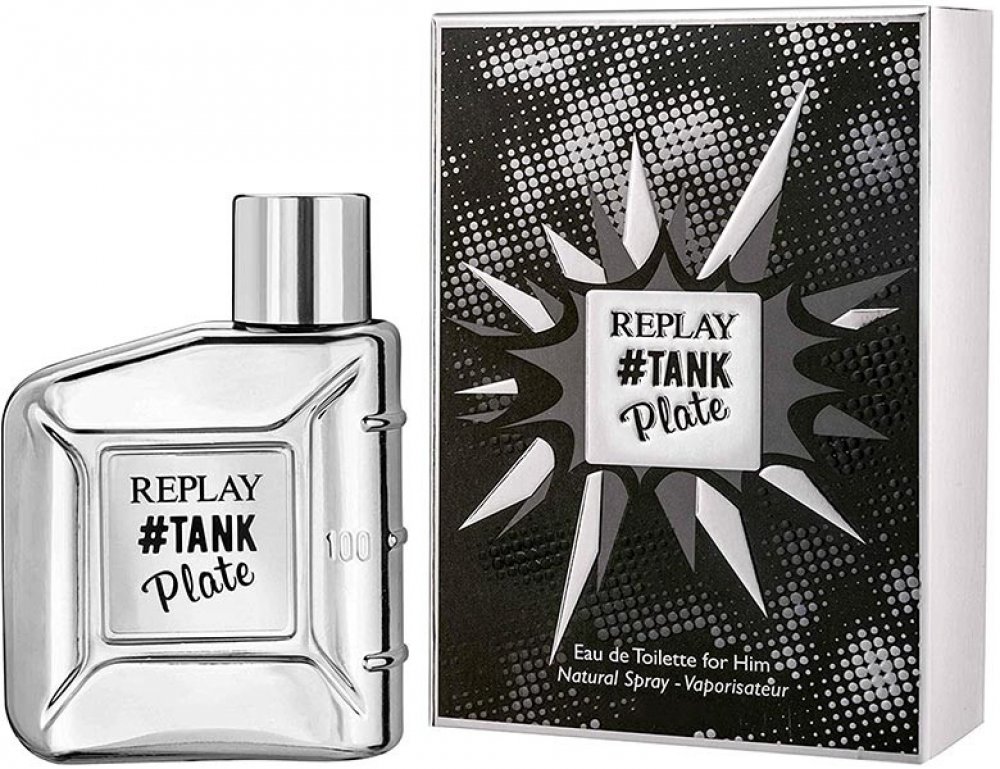Láhev a uzávěr jsou ozdobeny jedinečnou pochromovanou povrchovou úpravou, díky níž je celá vůně ještě hravější. Inspirací celého projektu je hnutí Pop-Art, které dokonale připomíná barvy lahví. Název vůně Replay Tank Plate je vyryt na metalické desce v přední části flakonu.