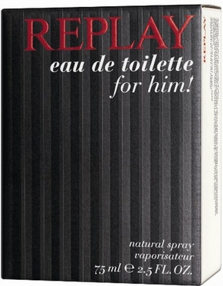 Replay 75 ml pánské toaletní vody citrusové s celodenní výdrží (4-8h) svěží a energické Replay For Him mainstreamové citrusy, kardamón muškátový oříšek ambra, dřevo Guaiac se střední projekcí letní kompatibilní s citrusy, s kardamónem, s muškátovým oříškem Replay testery TSA kompatibilní (≤100ml) rozprašovač standardní
