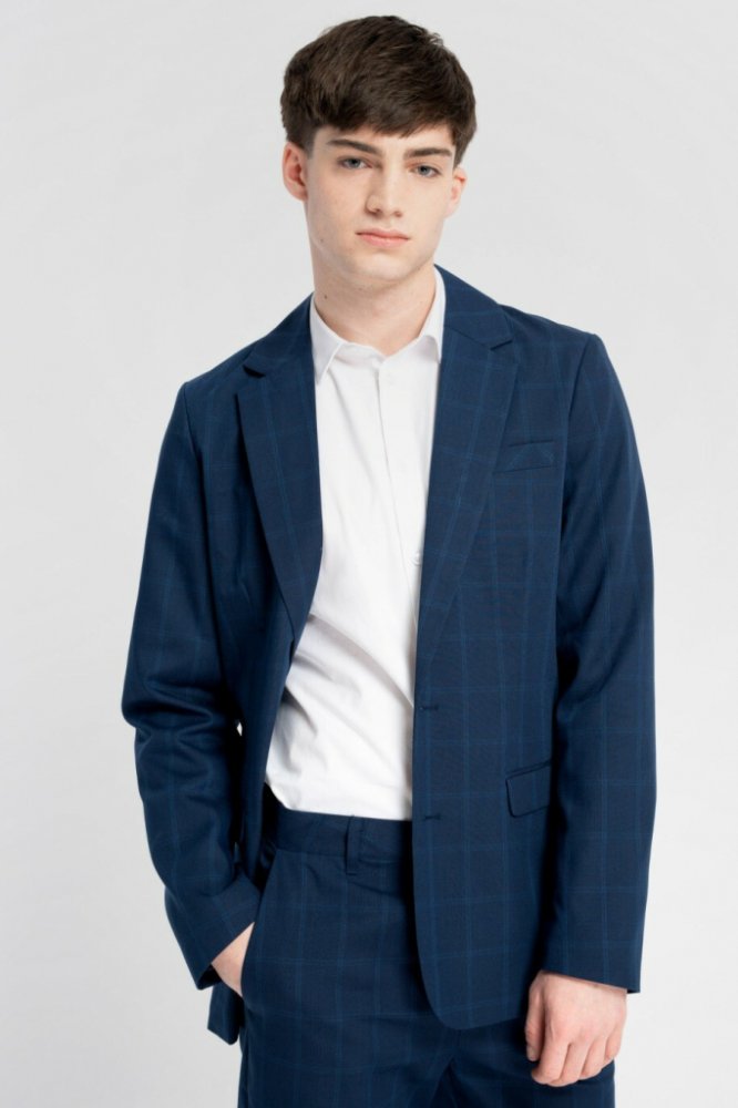 Modré kostkované sako je klasického designu se svěžím nádechem, vytvořené pro mladé lidi, kteří si cení stylu a pohodlí. Má vypasovaný střih, sahá až k bokům a volnější rukávy se směrem dolů mírně zužují. Zapínání na knoflíky, s vroubkovaným límečkem, vpředu i vzadu má tvarující průstřihy, které zvýrazňují siluetu. Imitované kapsy s patkou a knoflíková dírka dodávají elegantní nádech, zatímco zadní rozparky umožňují snadný pohyb. Vyrobeno z materiálu s výrazným kostkovaným vzorem. K doplnění kompletu nabízíme odpovídající kalhoty. Ve společnosti Reporter kombinujeme kvalitu s jedinečným charakterem.