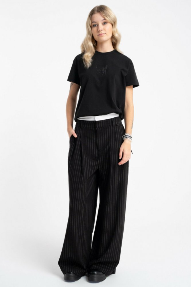 Černé žebrované kalhoty WIDE LEG, zapínané na zip