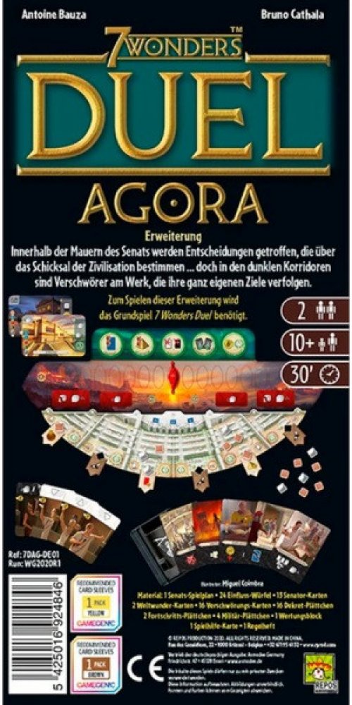 Toto rozšíření hry 7 divů světa: Duel přidává senátory a jejich vliv v senátu. Snažte se ovládat jeho komory a získávat výhody z dekretů, nebo povolejte spiklence, kteří dokáží celou situaci zvrátit.