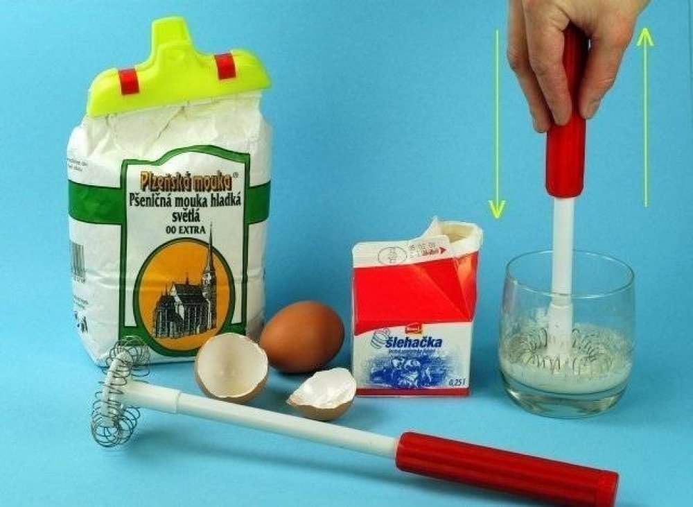 Šlechač slouží k dokonalému rozšlehání - např. pudingového prášku v mléce, sušeného mléka s vodou či ke šlehání šlehačky.