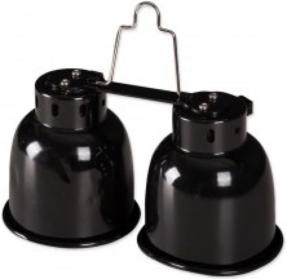 Dvojitá lampa s keramickou objímkou a reflektorem.