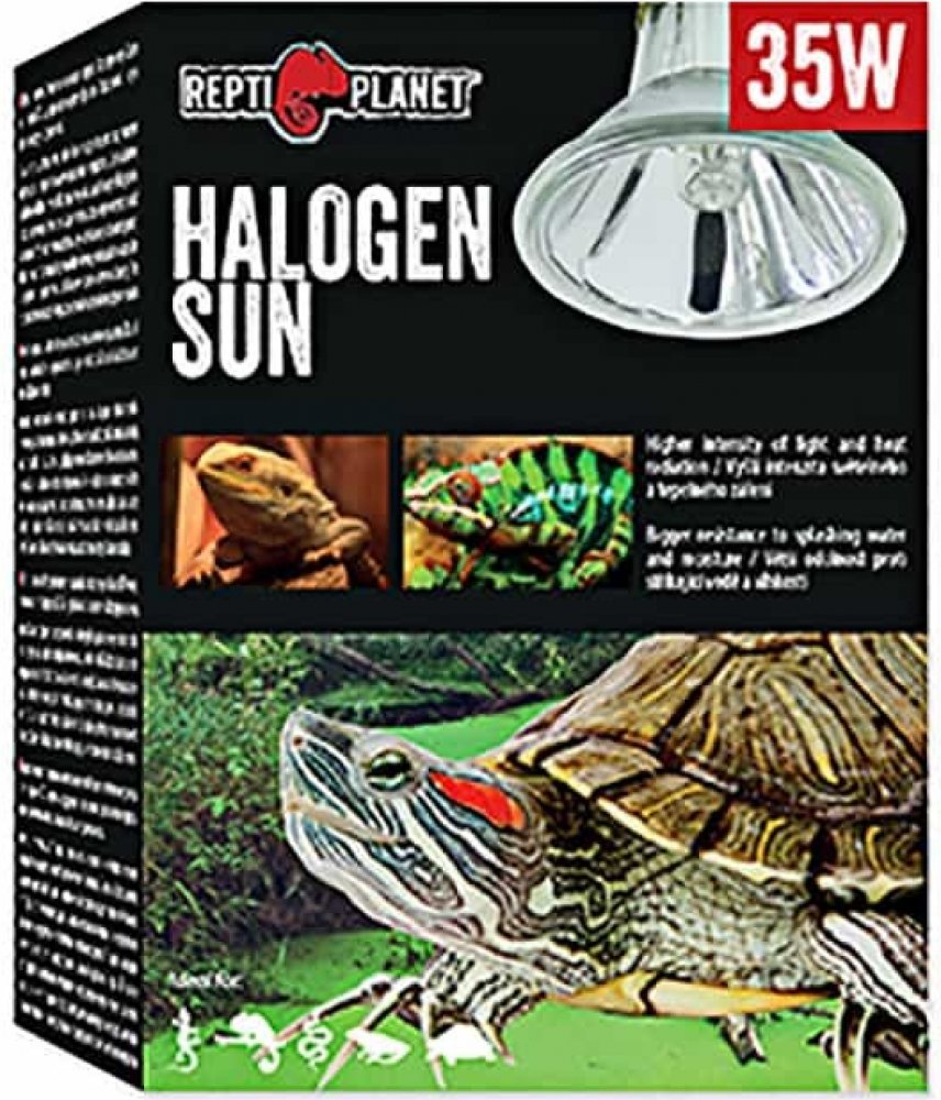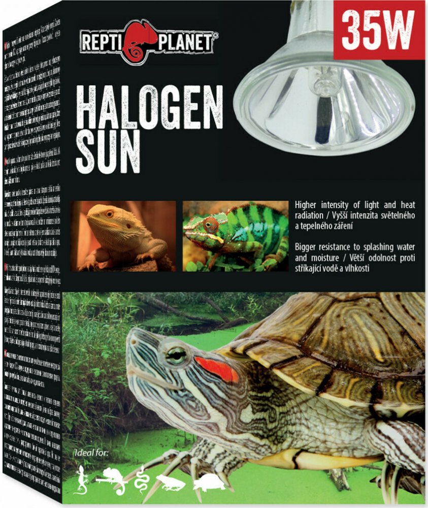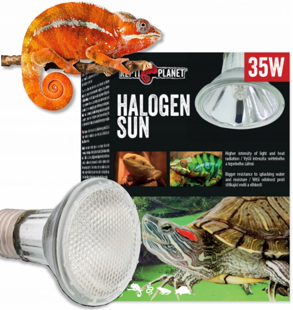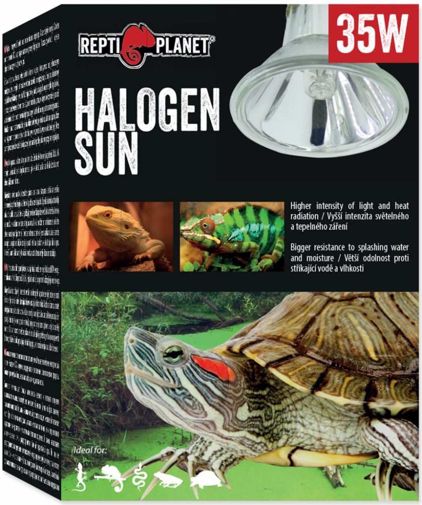 Žárovka REPTI PLANET Halogen Sun 35W - Halogenová žárovka přináší vyšší intenzitu světelného a tepelného záření v závislosti na nižší spotřebě elektrické energie (je možné zvolit žárovku s nižším výkonem). - Vyšší intenzita světelného a tepelného záření.