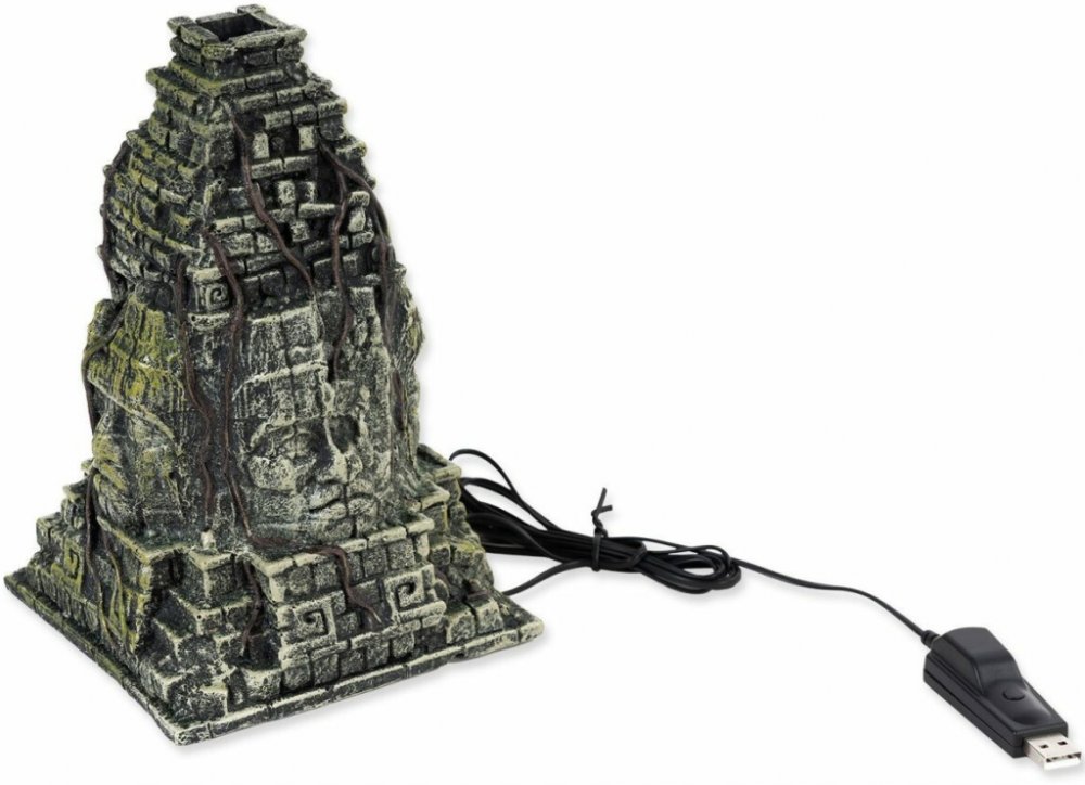 Vnitřní mlhovací systém v designu starověkých civilizací Latinské Ameriky. Zajišťuje optimální vlhkost v tropických a subtropických teráriích. Atraktivní design pyramidy starověkých civilizací, hodící se do tropických terárií. Zvyšuje vlhkost v teráriu. Ideální pro terarijní chov plazů a obojživelníků. Automatické vypnutí po nepřetržité práci po dobu delší než 6 hodin. Nezávislý přepínač na napájecím zdroji USB pro snadnou obsluhu. Kapacita vody 400 ml. Snadné doplňování vody. Rozměry: 12,5 x 12 x 19,5 cm