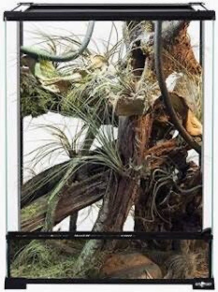 Terária jsou vybavena horním a spodním plastovým rámečkem, který umožňuje stohování terárií a umístění topných desek přímo na vnější stranu spodní skla.