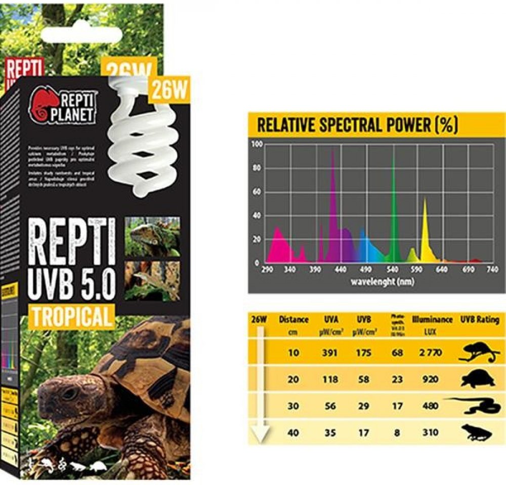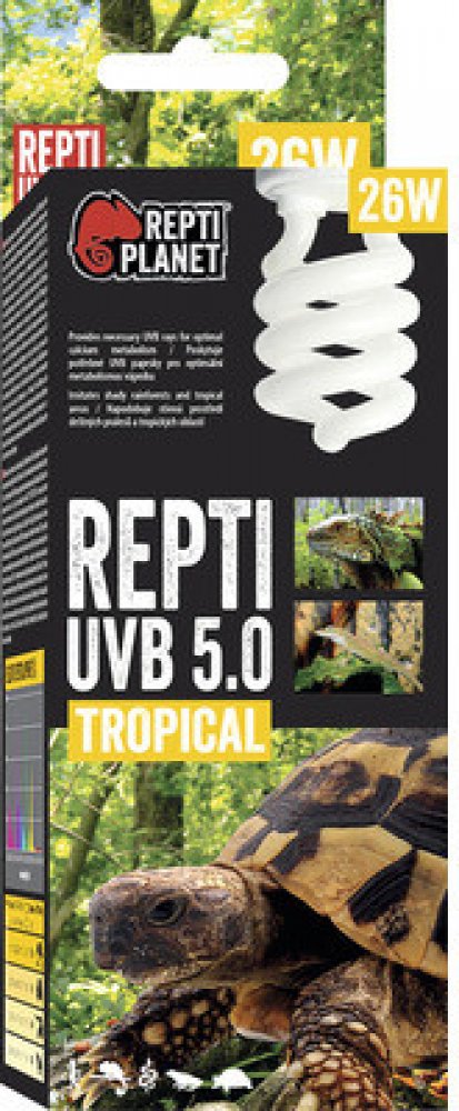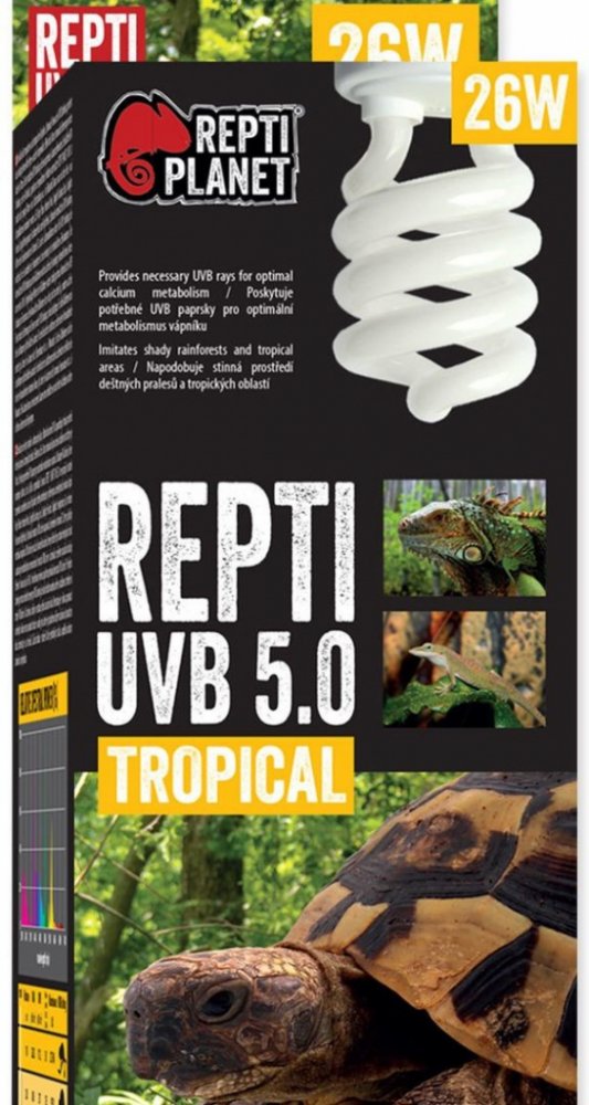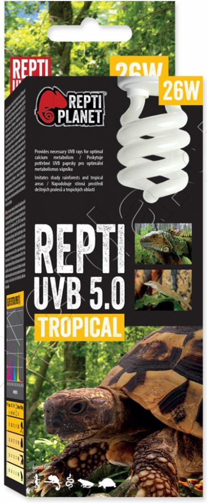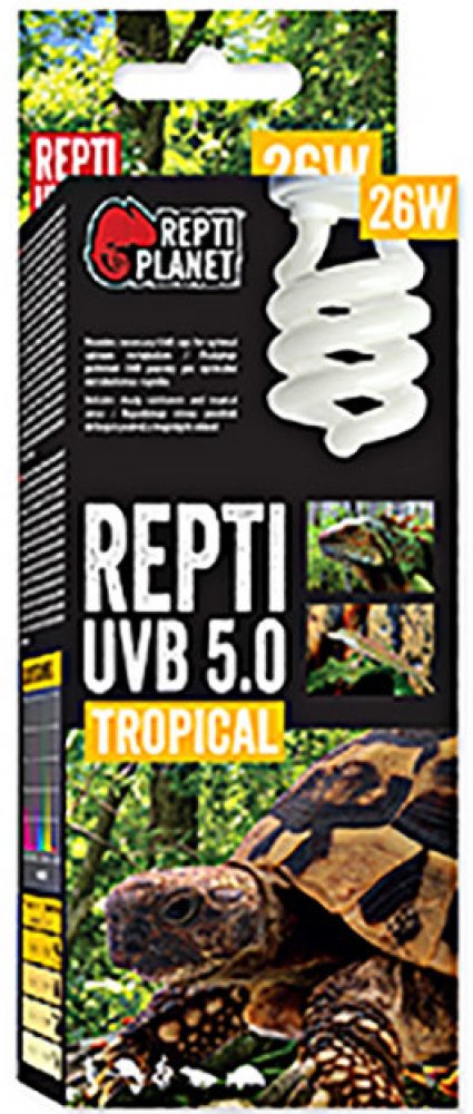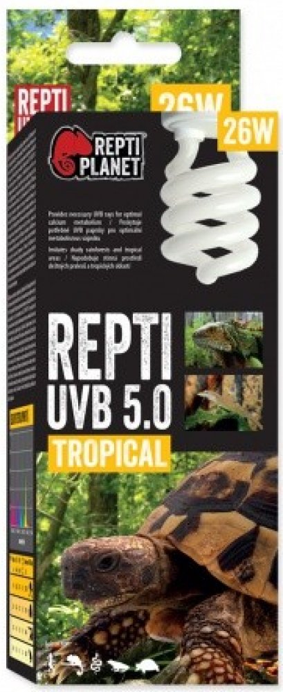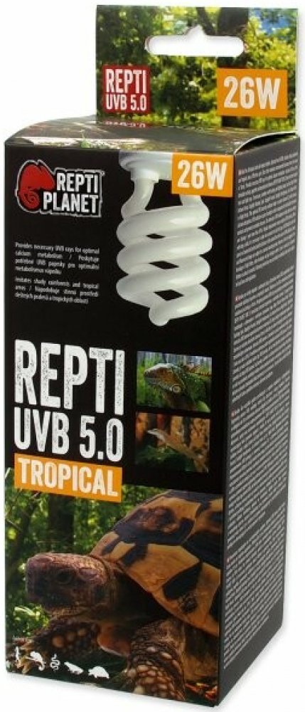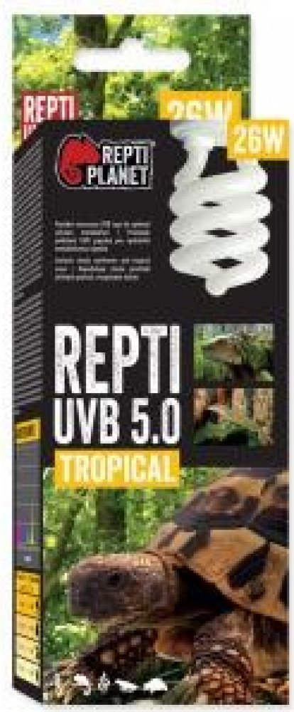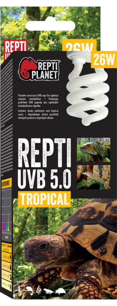 Obsahuje UVA záření, které podporuje aktivitu, chuť k jídlu a reprodukční chování. Repti UVB 5.0 (26W) - Ideální pro všechny tropické a subtropické plazy.