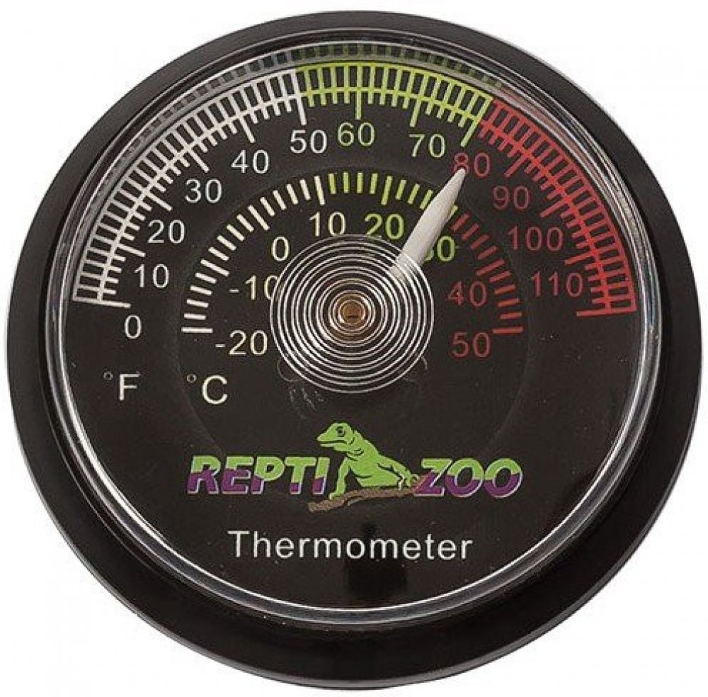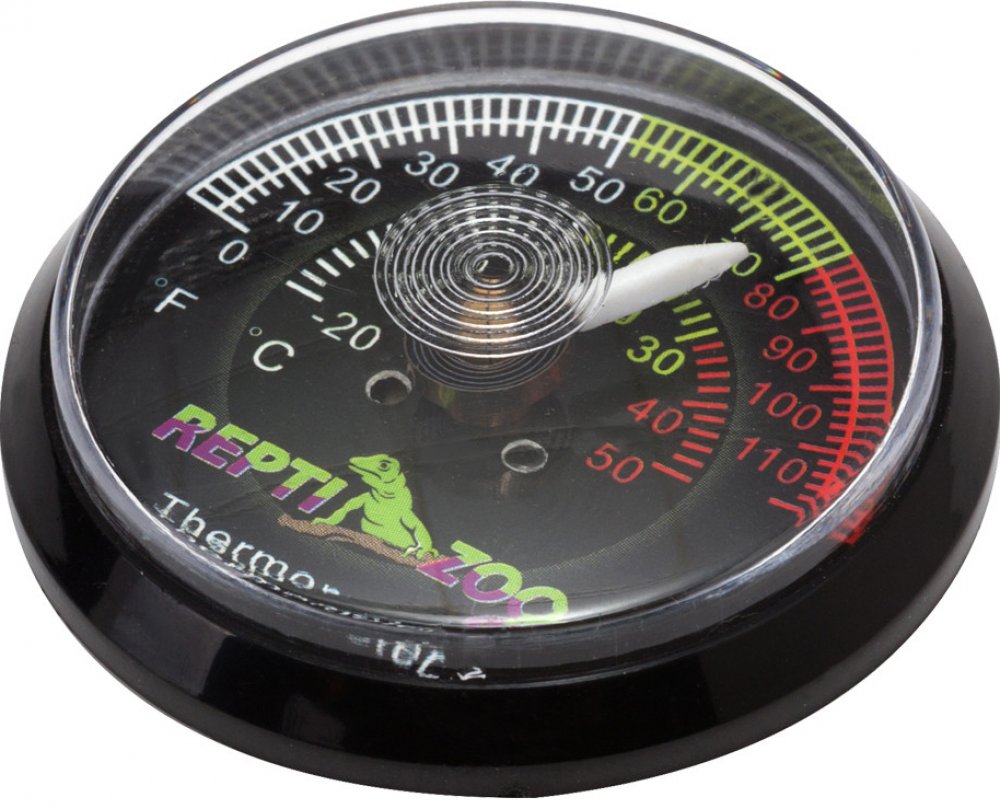 - analogový teploměr s kovovým čipem určený k měření teploty uvnitř terária