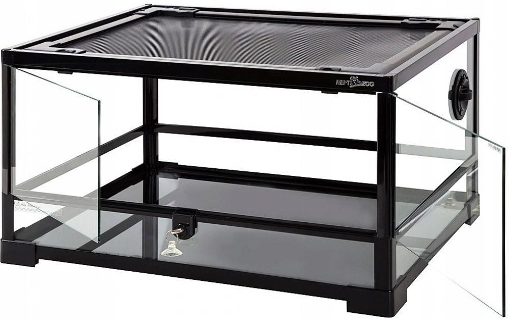 Dvířka jsou výklopná, což výrazně usnadňuje přístup do interiéru, má pozitivní vliv na estetiku terária a umožňuje patrování terárií.