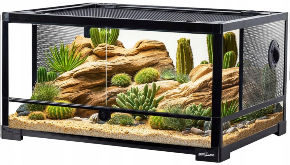 Boční stěny terária lze vybavit ocelovou sítí nebo nasadit sklo.