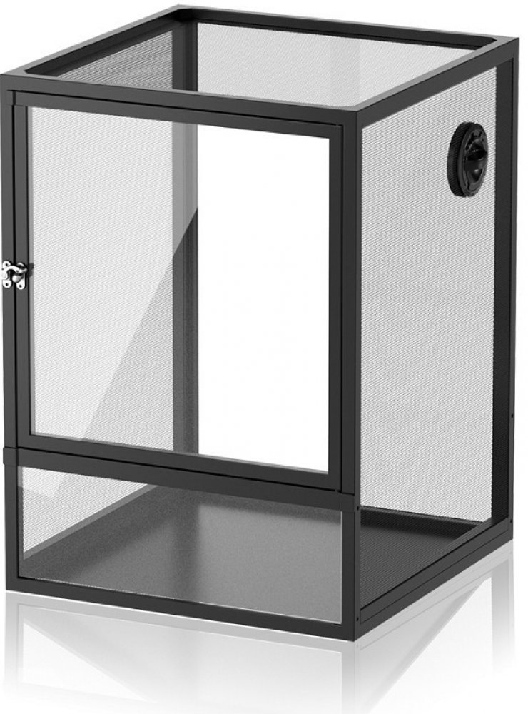 Pevná a odolná konstrukce: Kvalitní kovový rám se síťovinou a antikorozní úpravou Optimální podmínky: Hybridní řešení poskytuje dobrou ventilaci i schopnost udržet teplo a vlhkost Plné panely vpředu a vzadu: Pomáhají zadržet teplo, zabraňují rozstřikování vody a podporují stabilní klima Připraveno pro doplňky: Boční otvor pro vedení kabelů a možnost přilepení přírodního pozadí Snadná montáž: Rychlé a jednoduché sestavení bez složitých nástrojů