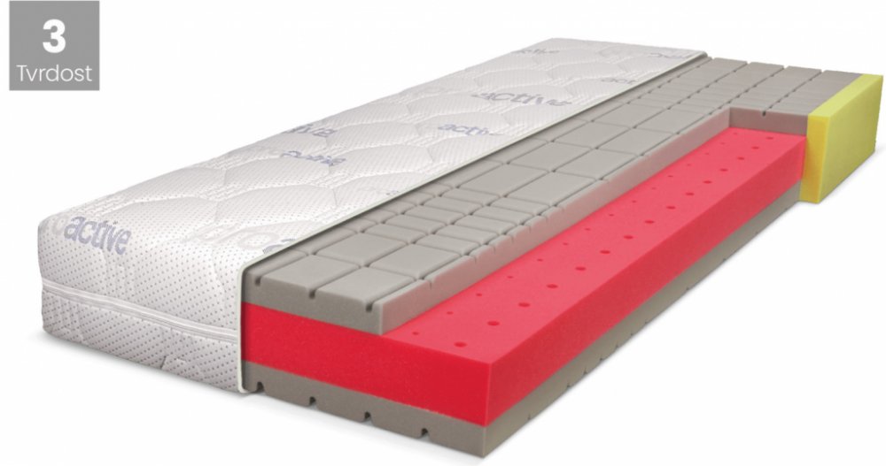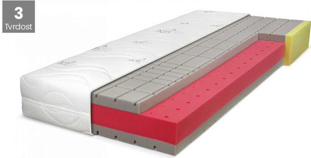 Antidekubitní 5zónová matrace. Antibakteriální a Silver Foam pěny eliminují výskyt roztočů a zamezují výskytu plísní a hub. Antidekubitní profilace se strukturovaným povrchem v oblasti ramen, beder a pánve garantuje dokonalé přizpůsobení se tělu a optimální proudění vzduchu. Středové jádro je navíc uprav...