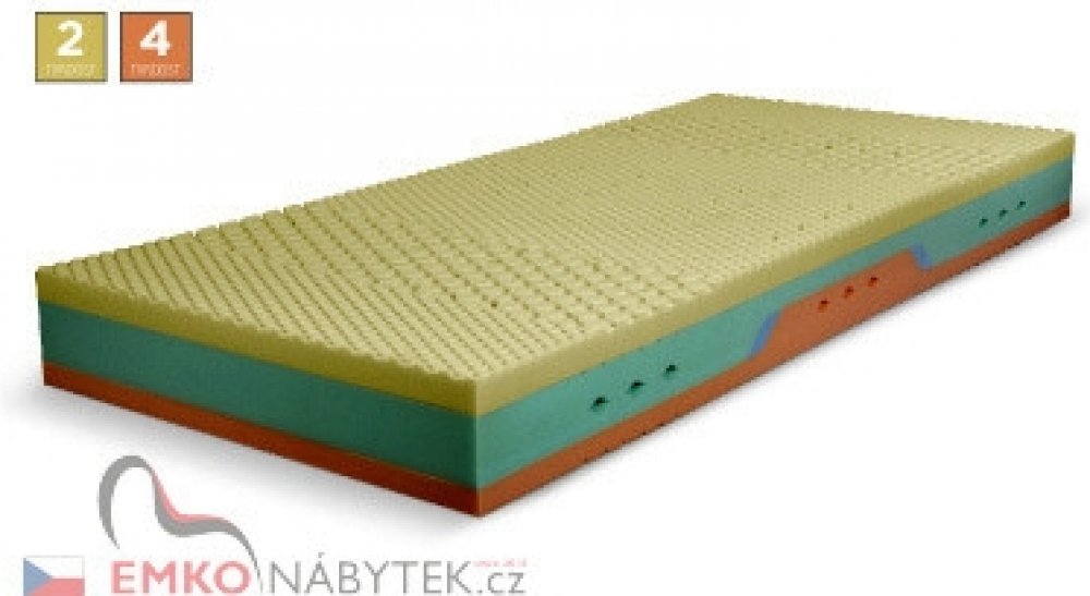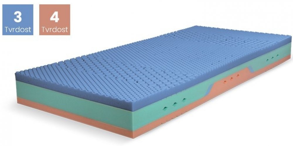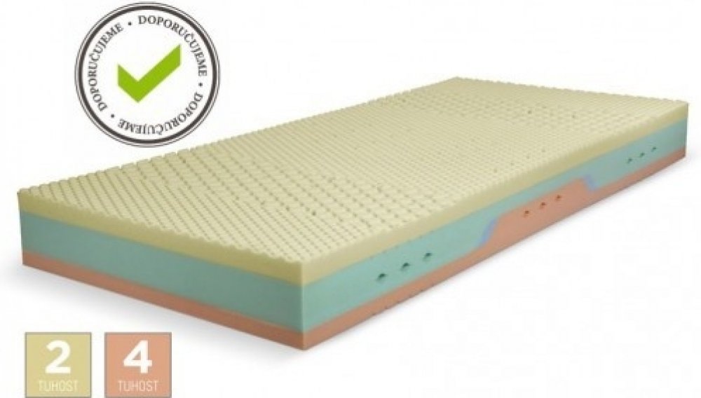Matrace je složena z důmyslně propracovaných dílů ze studených pěn Eurofoam vysokých objemových hmotností a pro maximální komfort jednostranně doplněn línou Visco pěnou. Ta je upravena nejmodernější povrchovou úpravou AIRFLOW zvyšující funkčnost a pohodlí Visco pěny. Speciální prolamovanou konstrukcí a zónováním je zajištěno pro každou část lidského těla optimální pohodlí a dokonalé provzdušnění. Jádro je navíc upraveno technologií ŘEŠETO, která zvyšuje hygienu, prodyšnost a životnost matrace.