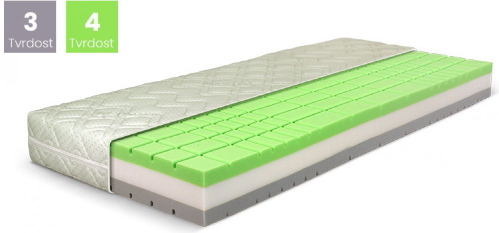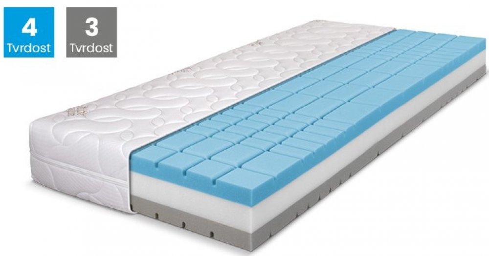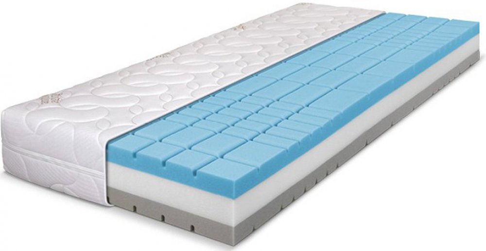 5 zónová luxusní antidekubitní matrace z kvalitních studených pěn. Důmyslný prořez se strukturovaným povrchem v oblasti ramen, beder a pánve garantuje vynikající přizpůsobení se tělu a optimální proudění vzduchu a tím zaručuje optimální spánkové klima. Antidekubitní prořez slouží jako prevence proti vzniku dekubitů a ndash; proleženin. Matrace je určena pro váhovou kategorii do 130 kg. Matrace je opatřena pratelným, zónově prošitým potahem. Celková výška matrace v potahu je cca 19cm.