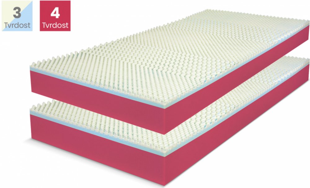 Jádro dvoutuhostní matrace z antibakteriální pěny je upraveno moderní technologií ŘEŠETO. Roznášecí deska VISCO/Hypersoft studené pěny a otevřenou strukturou a jedinečnou měkkostí, zajišťuje relaxaci pro Vaše tělo. Tyto úpravy zaručují vynikající odvětrání jádra. Nopová profilace povrchu zajišťuje odlehčení exponovaných míst na těle, zlepšuje prokrvení pokožky a zvyšuje prodyšnost. Antibakteriální...