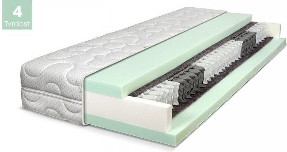 Luxusní matrace s jádrem s taštičkových pružin. Z obou stran je jádro opatřeno vrstvou kvalitní studené pěny o výšce 6 cm. Taštičkové matrace se vyznačují vysokou prodyšností a dlouhou životností. Tato matrace byla vytvořená pro náročné klienty ubytovacích zařízení vyšší kategorie.