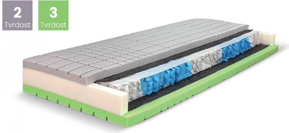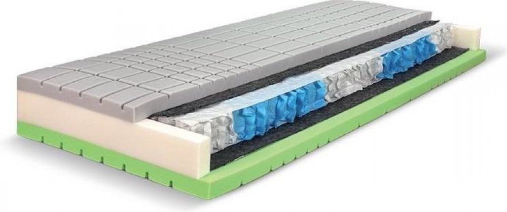 Luxusní matrace s jádrem z taštičkových pružin v kombinaci s vysoce komfortními studenými HR pěnami. Povrch jádra s antidekubitním prořezem slouží jako prevence proti vzniku proleženin. 5zónové taštičkové jádro matrace je složeno z velkého počtu pružin, které jsou samostatně zabaleny do taštičky z netkané textílie a díky tomu každá pružinka dokáže samostatně reagovat na zatížení, čímž je dosaženo optimálních ortopedických vlastností.